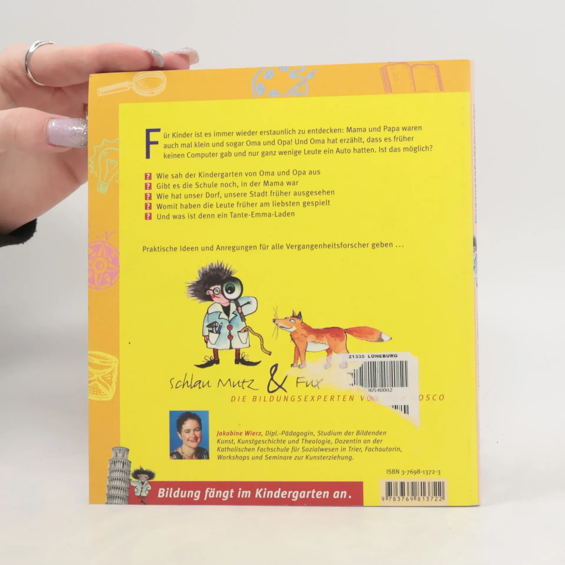 Die Reihe „Bildung fängt im Kindergarten an“ setzt beim kindlichen Interesse an und hilft Erzieherinnen, ihren Bildungsauftrag wahrzunehmen. Dabei geht es nicht darum, ein Bildungspensum abzuarbeiten. Es gilt, das natürliche Interesse zu unterstützen und zu fördern. Die praktischen Angebote sind so gestaltet, dass Kinder Bildungsgut auf aktive, spielerische und sinnliche Weise kennen- und damit umzugehen lernen. Im ersten Band geht es um das Entdecken der Vergangenheit - weniger der großen Historie als vielmehr der Bedeutung der eigenen Herkunft. So lässt sich etwa auf einem Dachboden, in alten Kleiderschränken, in Fotoalben oder in Erzählungen der Großeltern Geschichte ganz unmittelbar entdecken und erleben.