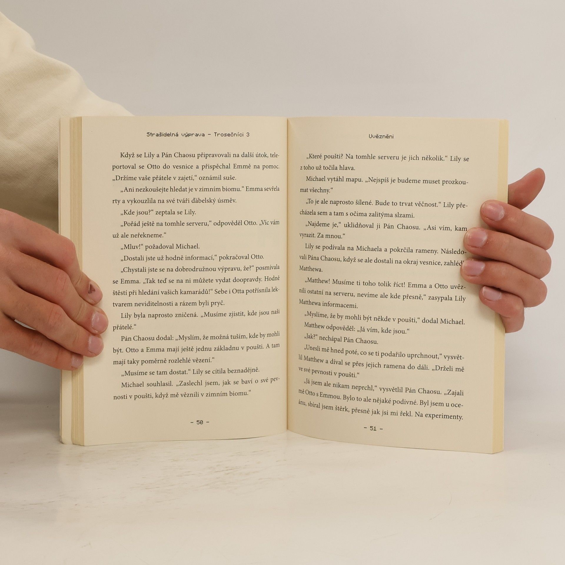 Pokračování dobrodružné série o dětech uvězněných ve virtuálním světě Minecraftu. Simon, Michael a Lily mají po uvěznění svého nepřítele - Pána Chaosu, konečně možnost pořádně poznat nové přátele, které v Minecraftu potkali. A když je jeden z nich pozve na výpravu za ztraceným pokladem, nemohou odolat. Jenže když jejich parta opustí vesnici, dostane Pán Chaosu jedinečnou možnost uniknout ze zajetí.