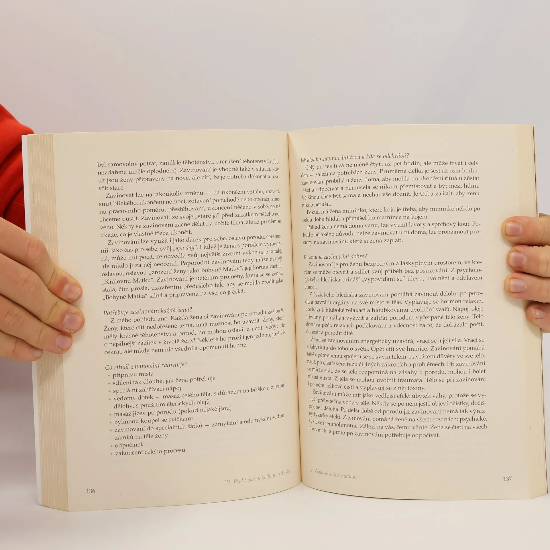 Kniha spojuje hluboké osobní zkušenosti s pradávnými tradicemi — šamanskou, egyptskou, antickou, pohanskou, slovanskou a keltskou. Tyto tradice se aktualizují a objevují v každodenním životě moderní ženy, zachycující klíčové etapy prostřednictvím pěti archetypů: Panny, Matky, Milenky, Vědmy a Královny. Každá fáze nese charakteristiky a milníky, které je důležité vědomě oslavit a integrovat. Rituál se stává podpůrným nástrojem, který pomáhá v pohybu stagnace a uklidňuje rozbouřené situace. Kniha nabízí živé a praktické postupy pro přípravu a provádění rituálů — osobních, párových i skupinových. Obsahuje inspirativní směs cvičení, konstelací, vizualizací, meditací a modliteb, které lze použít jak jsou, nebo improvizovat podle vlastní intuice. Je určena i pro ženy, které chtějí obohatit svou práci s ženskými skupinami rituálními prvky. Naleznete zde rituály pro důležité životní přechody, jako jsou předsvatební a svatební obřady, předporodní rituály, uvítání miminka, ukončení kojení, první menstruace, vstup do ženství, menopauza, prázdné hnízdo, rozvod a rozloučení se zesnulým.