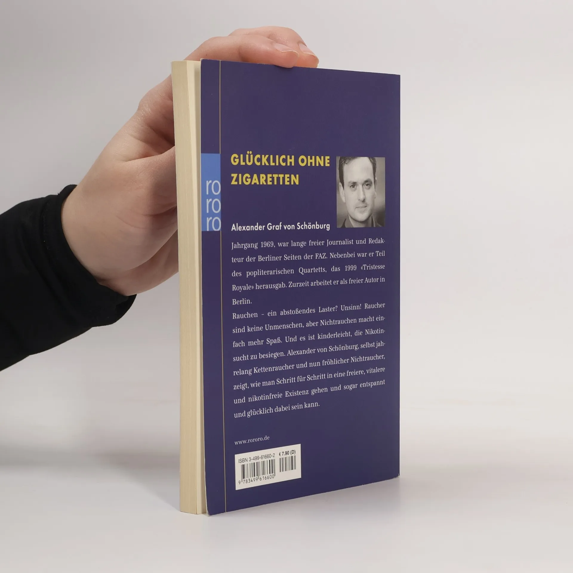 Glücklich ohne Zigaretten Alexander Graf von Schönburg «Als Raucher reagiert man sehr empfindlich auf Ratschläge von Nichtrauchern. Noch allergischer auf schmetternde Verdammungsarten konvertierter Exraucher. Schönburg macht es anders: Voller Würde stellt er fest, wie schön das Rauchen ist. Und fügt hinzu: Noch schöner ist nur, damit aufzuhören.» Süddeutsche Zeitung «Schönburgs Credo ist so einfach wie schlagend: Man muss es nur wollen – und wird bald merken, dass man sich kaum mehr an das erinnert, was einem doch angeblich so sehr fehlen muss. All das wird schrittweise ausgeführt und mit konkreten Handlungsweisen versehen.» Frankfurter Allgemeine Zeitung «Ebenso überzeugend wie Allen Carrs Best- und Longseller, aber ungleich amüsanter und eloquenter.» Welt am Sonntag