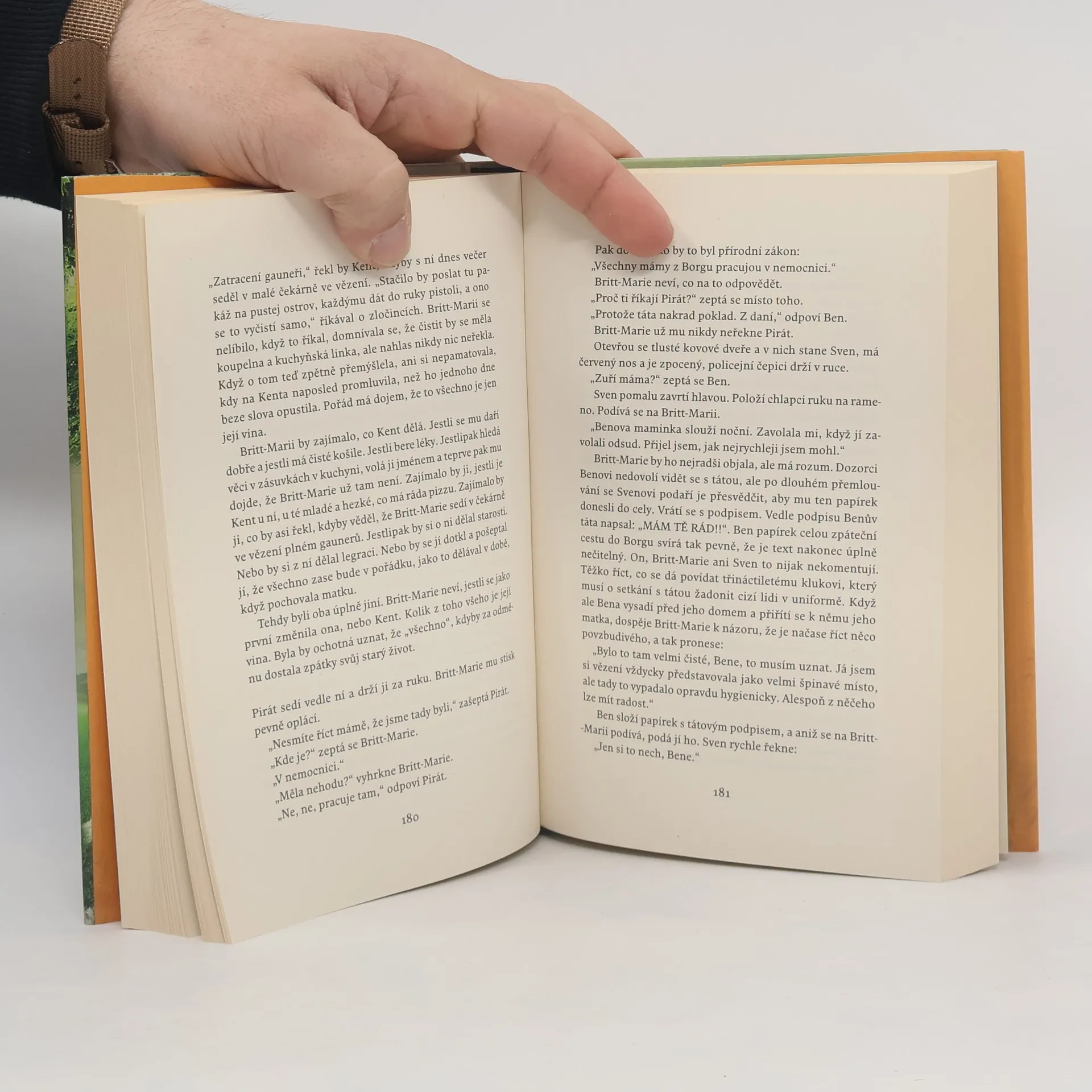 Román o tom, jak se lidé ztrácejí, zamilovávají a kopou do všeho, co je kulaté. Nejhezčí věc, kterou můžete o vesnici Borg říct, je to, že leží u silnice. O Britt-Marii zase někdo řekl, že je pasivně agresivní, zpomalená a hašteřivá babizna. A to není hezké vůbec – i když možná ne úplně nepravdivé. Britt-Marie po čtyřiceti letech manželství opustila město a manžela, který ji podváděl, a přijela do Borgu. Borg zasáhla finanční krize a nechala po sobě jen cedule s nápisem „Na prodej“ a pizzerii, která je cítit pivem. Britt-Marie nesnáší fotbal. Fotbal je to jediné, co v Borgu zůstalo. Tohle nevypadá na začátek krásného přátelství, to rozhodně ne. Ale když děti z fotbalového týmu v Borgu potřebují trenéra tak zoufale, že se nakonec rozhodnou přijmout kohokoliv, tak je detaily jako třeba ten, že ona opravdu, ale opravdu dělat kouče nechce, nezajímají. Tady byla Britt-Marie je román o tom, jaké to je mít předsudky (ne že by Britt-Marie nějaké měla, to samozřejmě ne), o ukládání příborů ve správném pořadí (vidličky, nože, lžíce, v tomhle pořadí, ale Britt-Marie na tom přece netrvá!) a o přírodě vedle silnice. Je to příběh o druhých šancích, prvních výkopech a o tom, že jedlá soda vyčistí skoro všechno.