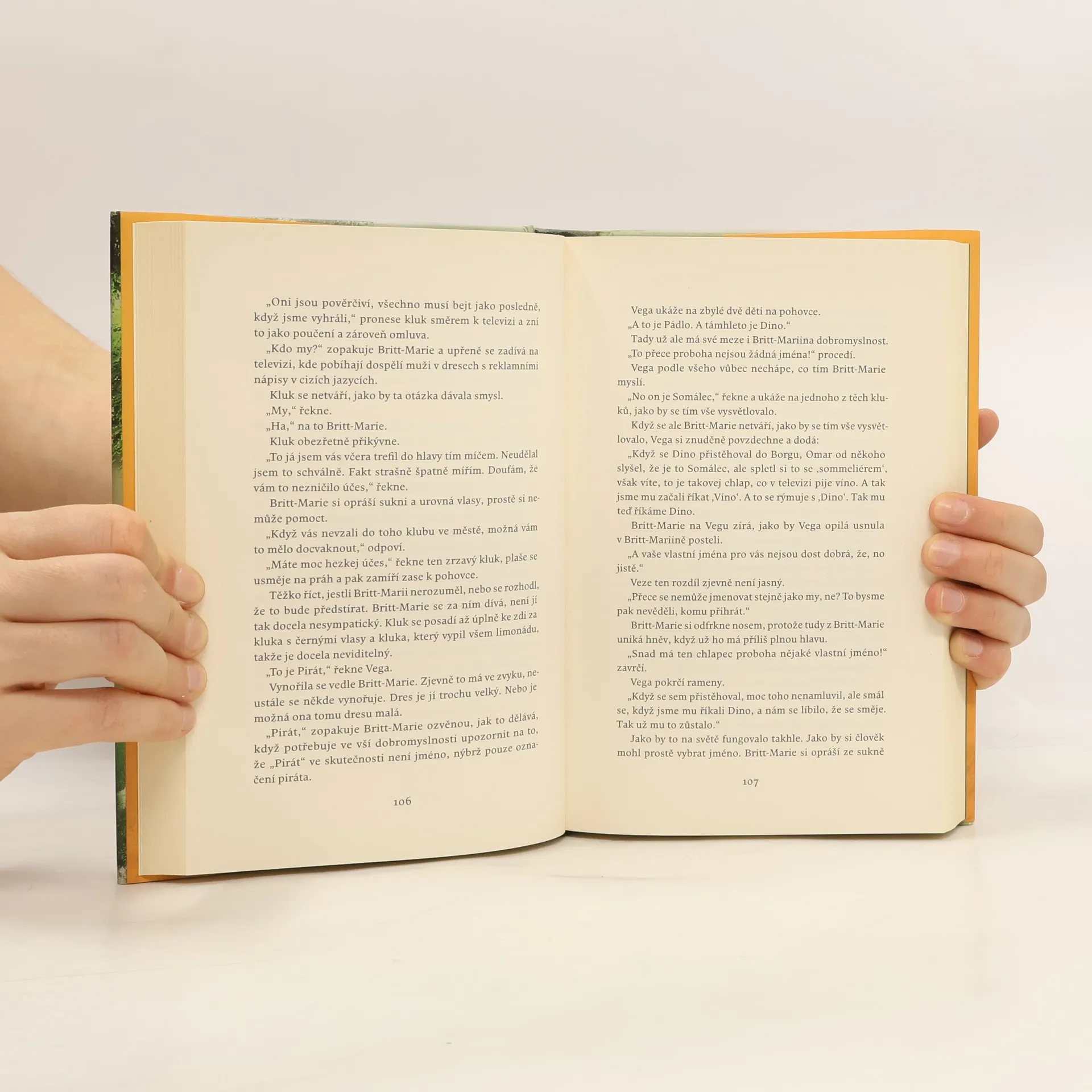 Román o tom, jak se lidé ztrácejí, zamilovávají a kopou do všeho, co je kulaté. Nejhezčí věc, kterou můžete o vesnici Borg říct, je to, že leží u silnice. O Britt-Marii zase někdo řekl, že je pasivně agresivní, zpomalená a hašteřivá babizna. A to není hezké vůbec – i když možná ne úplně nepravdivé. Britt-Marie po čtyřiceti letech manželství opustila město a manžela, který ji podváděl, a přijela do Borgu. Borg zasáhla finanční krize a nechala po sobě jen cedule s nápisem „Na prodej“ a pizzerii, která je cítit pivem. Britt-Marie nesnáší fotbal. Fotbal je to jediné, co v Borgu zůstalo. Tohle nevypadá na začátek krásného přátelství, to rozhodně ne. Ale když děti z fotbalového týmu v Borgu potřebují trenéra tak zoufale, že se nakonec rozhodnou přijmout kohokoliv, tak je detaily jako třeba ten, že ona opravdu, ale opravdu dělat kouče nechce, nezajímají. Tady byla Britt-Marie je román o tom, jaké to je mít předsudky (ne že by Britt-Marie nějaké měla, to samozřejmě ne), o ukládání příborů ve správném pořadí (vidličky, nože, lžíce, v tomhle pořadí, ale Britt-Marie na tom přece netrvá!) a o přírodě vedle silnice. Je to příběh o druhých šancích, prvních výkopech a o tom, že jedlá soda vyčistí skoro všechno.