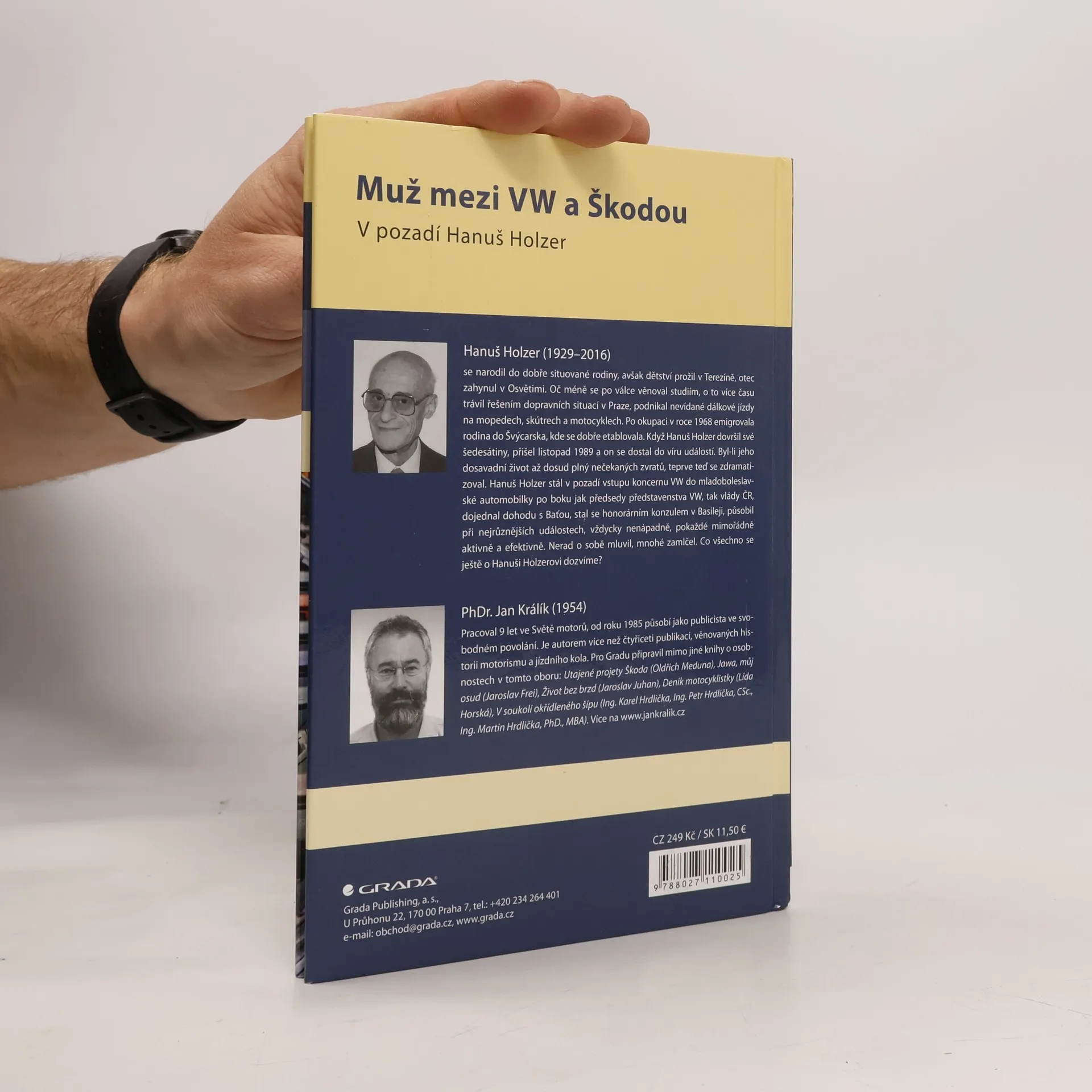 Hanuš Holzer (1929–2016) se narodil do dobře situované rodiny, avšak dětství prožil v Terezíně, otec zahynul v Osvětimi. Oč méně se po válce věnoval studiím, o to více času trávil řešením dopravních situací v Praze, podnikal nevídané dálkové jízdy na mopedech, skútrech a motocyklech. Po okupaci v roce 1968 emigrovala rodina do Švýcarska, kde se dobře etablovala. Když Hanuš Holzer dovršil své šedesátiny, přišel listopad 1989 a on se dostal do víru událostí. Byl-li jeho dosavadní život až dosud plný nečekaných zvratů, teprve teď se zdramatizoval. Hanuš Holzer stál v pozadí vstupu koncernu VW do mladoboleslavské automobilky po boku jak předsedy představenstva VW, tak vlády ČR, dojednal dohodu s Baťou, stal se honorárním konzulem v Basileji, působil při nejrůznějších událostech, vždycky nenápadně, pokaždé mimořádně aktivně a efektivně. Nerad o sobě mluvil, mnohé zamlčel. Co všechno se ještě o Hanuši Holzerovi dozvíme?