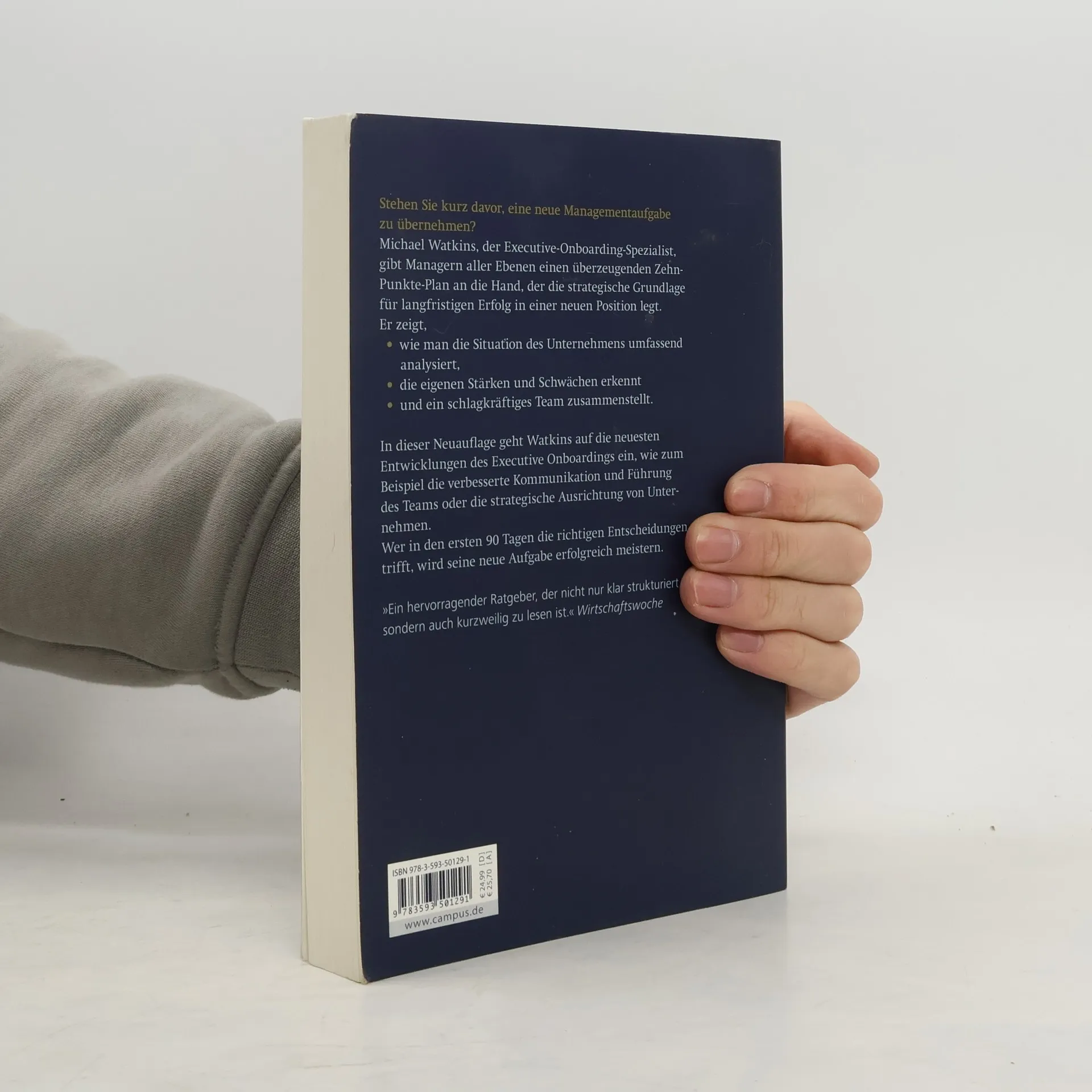 Michael Watkins gibt Managern aller Ebenen einen überzeugenden Zehn-Punkte-Plan an die Hand, der die strategische Grundlage für langfristigen Erfolg in einer neuen Position legt. Er zeigt unter anderem, wie man die Situation des Unternehmens umfassend analysiert, die eigenen Stärken und Schwächen erkennt und ein schlagkräftiges Team zusammenstellt. In der Neuauflage geht Watkins auf die neuesten Entwicklungen des Executive Onboarding ein, wie zum Beispiel die verbesserte Kommunikation und Führung des Teams oder die strategische Ausrichtung von Organisationen. Wer in den ersten 90 Tagen die richtigen Entscheidungen trifft, wird seine neue Aufgabe erfolgreich meistern.