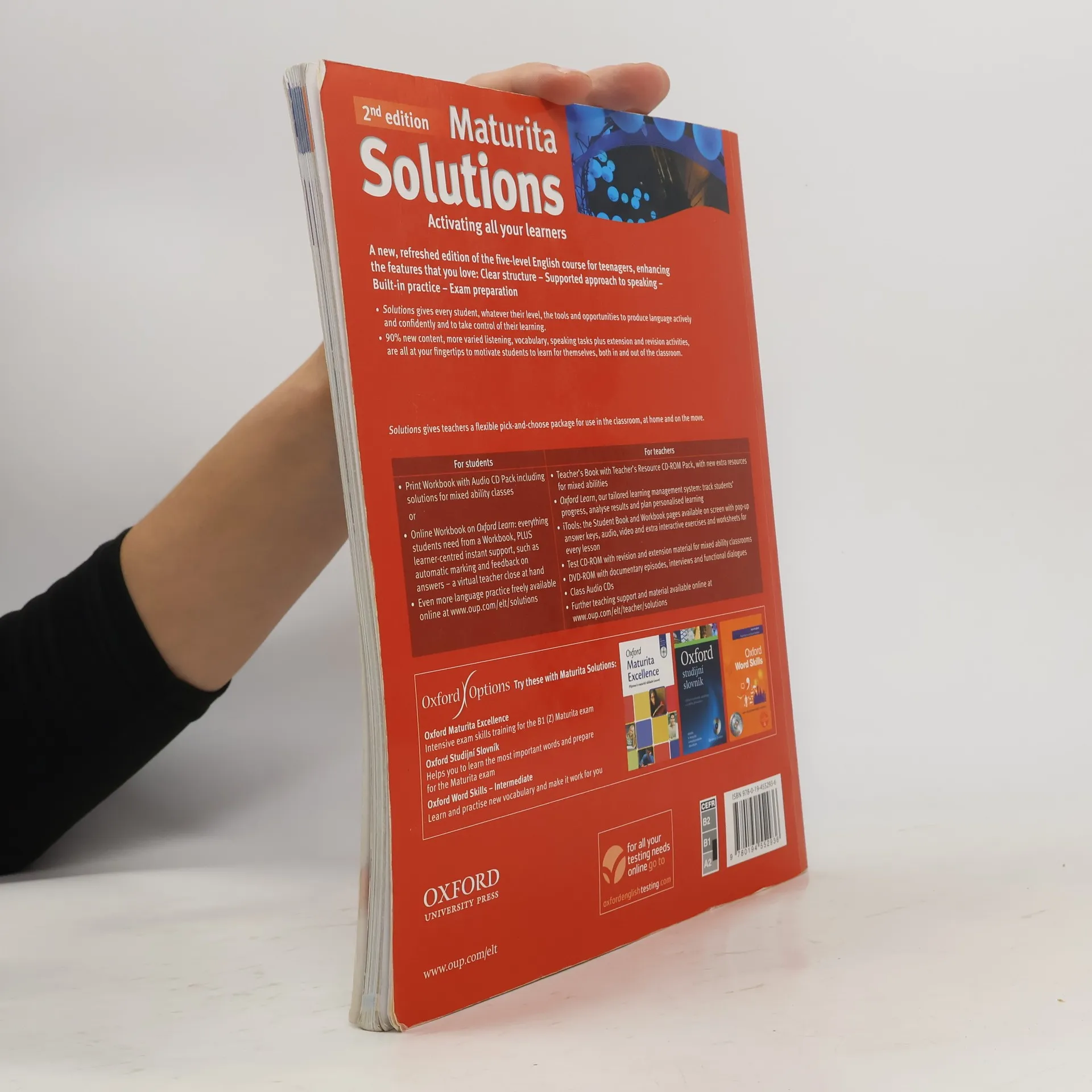Učebnice. Zcela nový pětidílný kurz určený pro studenty českých středních škol, kteří se připravují na NOVOU MATURITU z anglického jazyka. - přehledná, jednoduchá stavba lekce: jedna stránka = jedna 45minutová hodina probírá a procvičuje maturitní témata - GET READY FOR MATURITA - připravuje na všechny části a na obě úrovně NOVÉ MATURITY - v metodické příručce je mnoho kopírovatelných doplňkových materiálů a nápadů pro mixed-ability classes