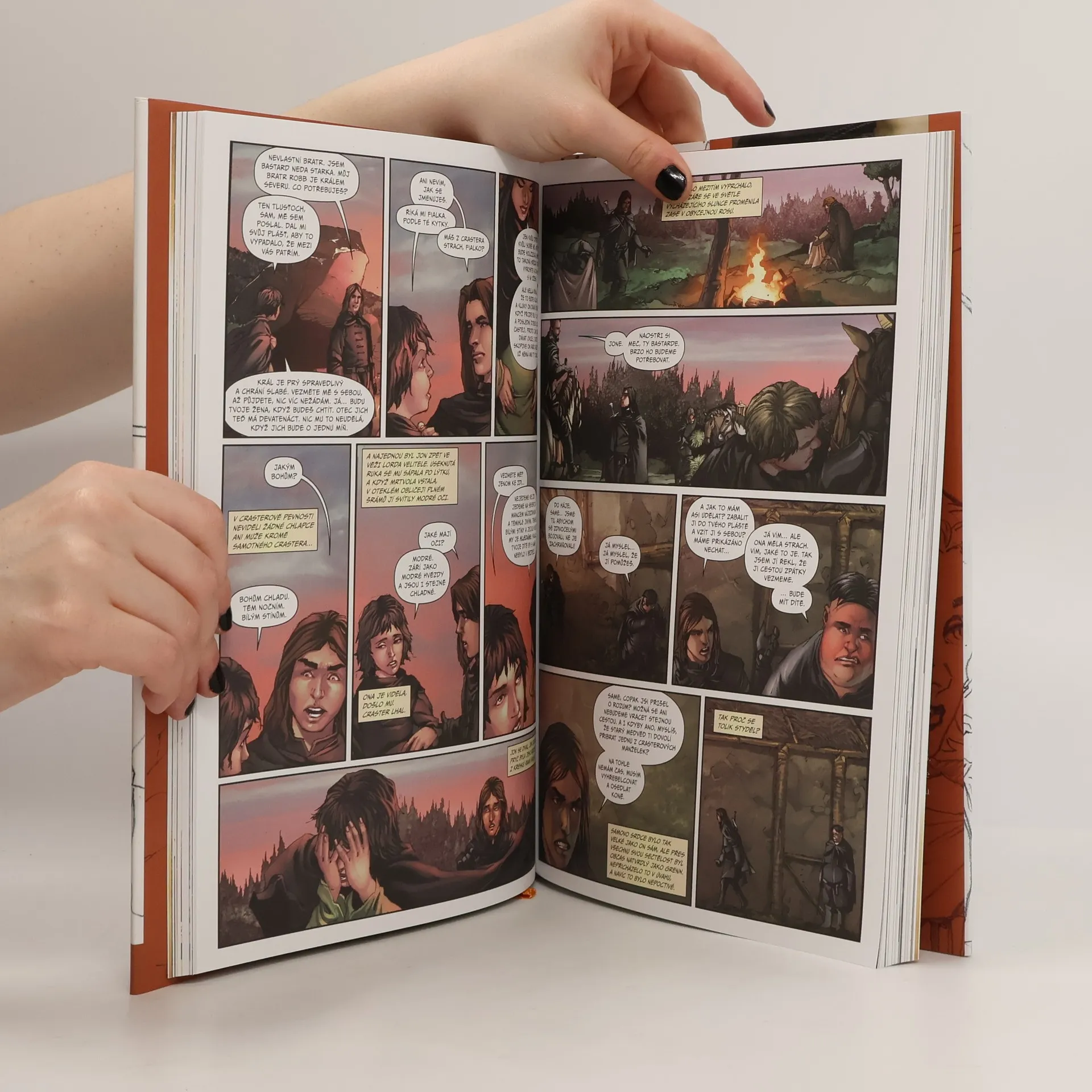 Čtyři sady komiksů Her o trůny dokazují, že „Píseň ledu a ohně“ umí okouzlit v jakékoliv formě. Úspěšný autor bestsellerů New York Times, Landry Q. Walker, a ilustrátor Mel Rubi nyní představují další řadu založenou na druhém dílu slavné ságy. Mírumilovné léto plné hojnosti trvající dlouhých deset let se chýlí ke konci a drsná, ledová zima se blíží jako zuřivé zvíře. Dva velcí vůdci – lord Eddard Stark a král Robert Baratheon –, kteří vládli věku vynuceného míru, se stali oběťmi královské zrady a jsou nyní po smrti. V celé zemi – od prastarého Dračího kamene po strohé zdi Zimohradu – vládne chaos. Vládci Sedmi království, kteří se ucházejí o železný trůn, jsou připraveni se ho zmocnit v nelítostné válečné vřavě. Oblohu rozzáří proroctví slibující zkázu – kometa barvy krve a ohně – a o vládu nad zemí mezitím usiluje šest mocností. Eddardův syn Robb se prohlásil králem Severu. Následník trůnu Joffrey v Králově přístavišti je králem jen podle jména, ovládán pletichami dvořanů, jimiž se hlavní město hemží. O trůn usilují i dva Robertovi bratři. A na vzdáleném světadílu mezitím takzvaná Matka draků riskuje všechno, aby převedla svůj lid i své dračí děti přes horoucí poušť a vzala si zpátky, co jí po právu patří. Ve světě incestu, bratrovraždy, alchymie a hrdlořezů lze cenu slávy vyvážit jen krví. Vítězství se dočkají jen muži a ženy chladnější než břitká ocel… a se stejně ledovým srdcem. Střet králů nevyhnutelně pocítí celá země.