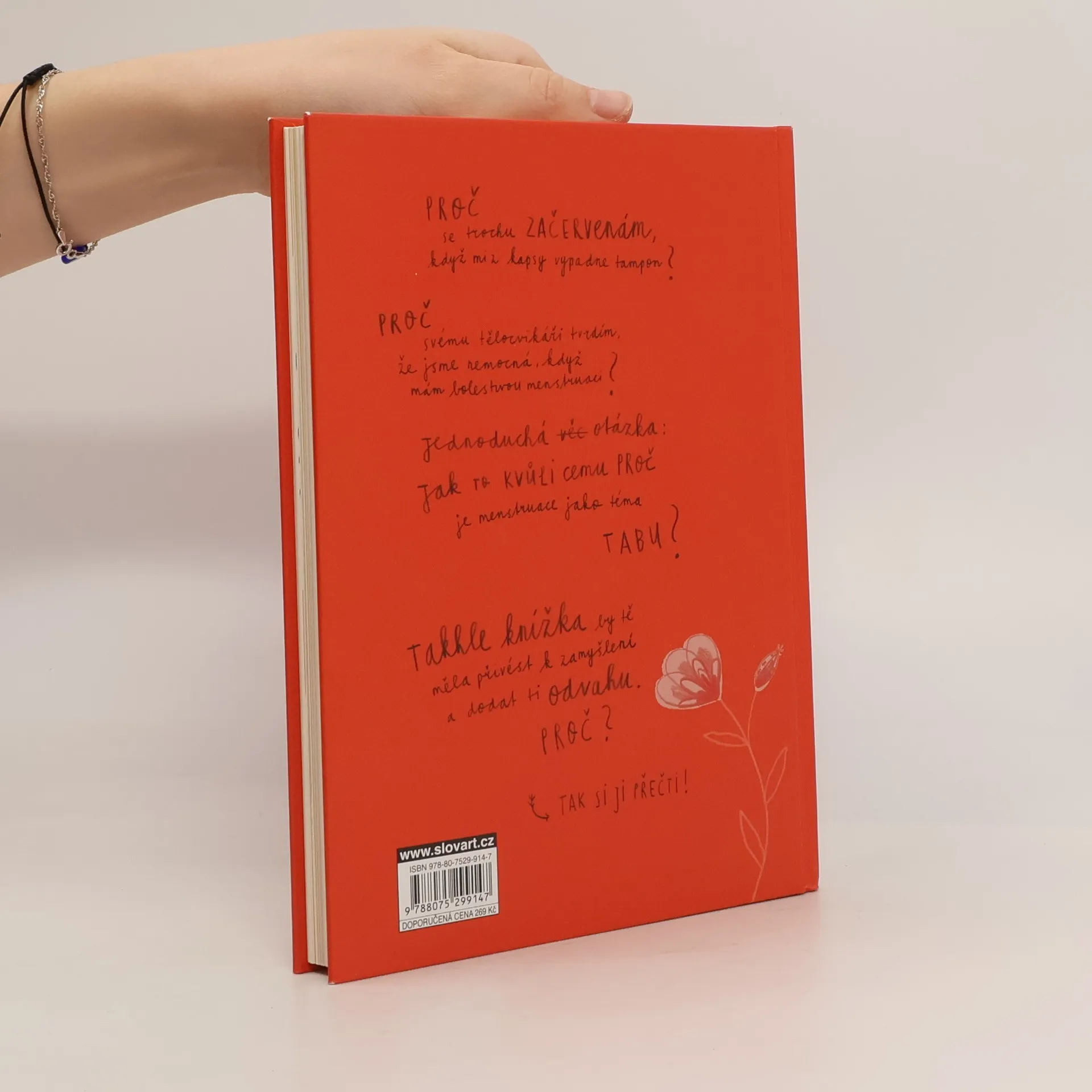Neuvěřitelné mýty a fakta o menstruaci. Všichni vědí, co je menstruace. Každý měsíc ztratí žena trochu krve – asi tak obsah jednoho šálku espressa. Díky tomu se můžou rodit děti. A někdy při ní bolí břicho nebo panuje blbá nálada. Ale pssst, mluvit o tom je přece trapný a nechutný! Anebo ne? Mladá spisovatelka a výtvarnice nakreslila o menstruaci vtipnou knížku, ze které se dozvíte, jaké nesmysly se dříve o menstruaci povídaly, proč byly ženy považovány za špinavé, i co přesně se v tuhle dobu s tělem děje. Kniha je plná odzbrojujícího humoru a vtipných obrázků a je vhodná pro holky stejně jako pro kluky.
