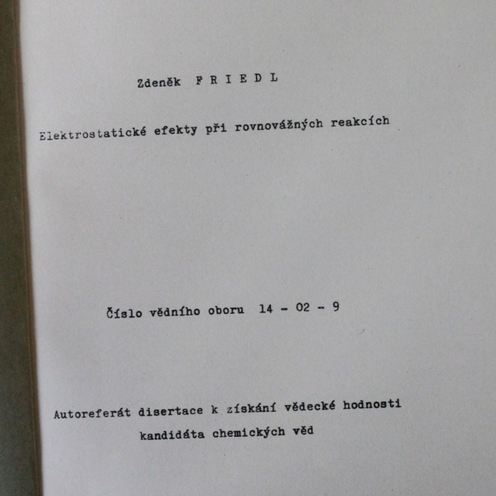 Elektronické efekty při rovnovážných reakcích (Autoportrét kandidátské disertační práce), Zdeněk Friedl