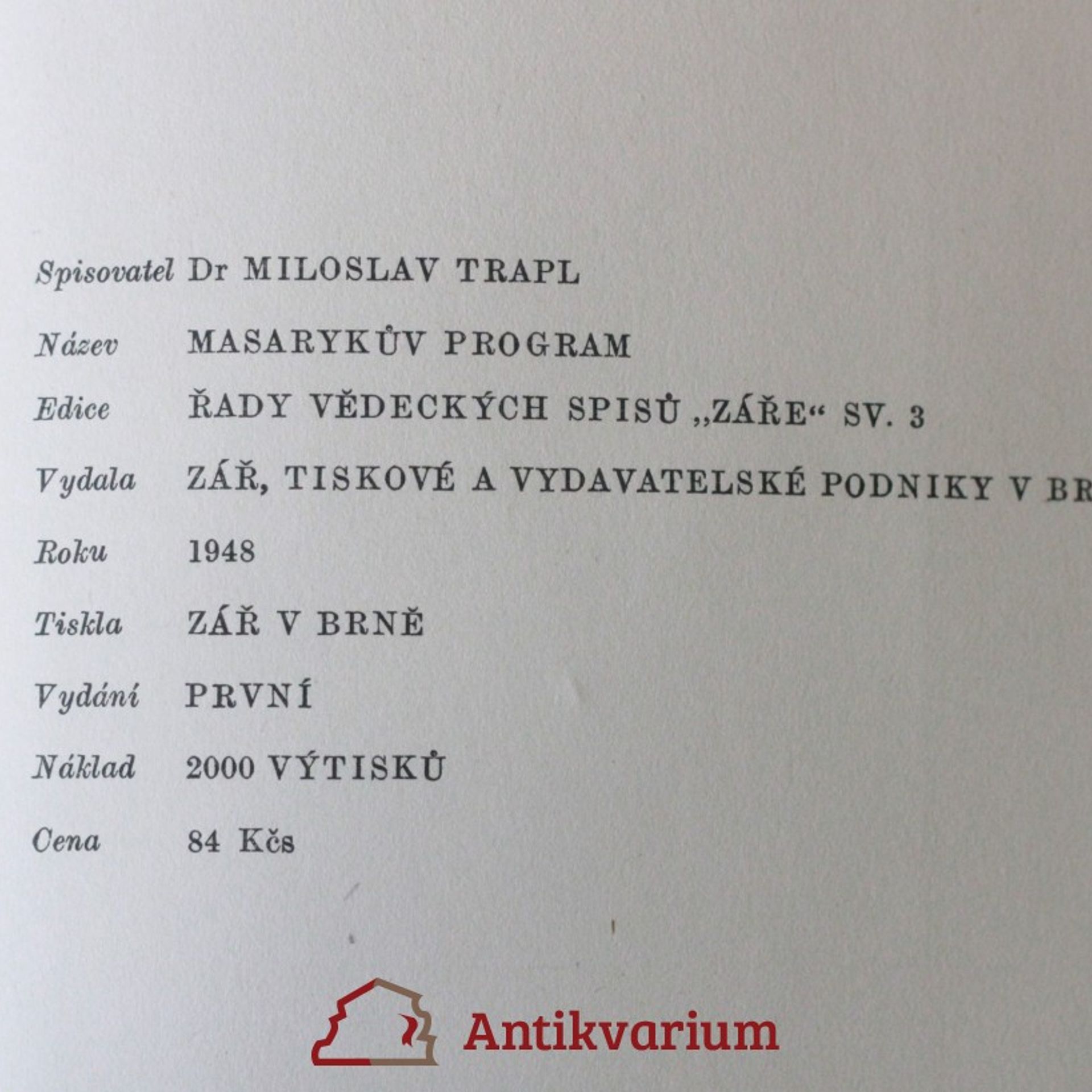 Masarykův program : demokracie-socialismus-česká otázka, Miloslav Trapl