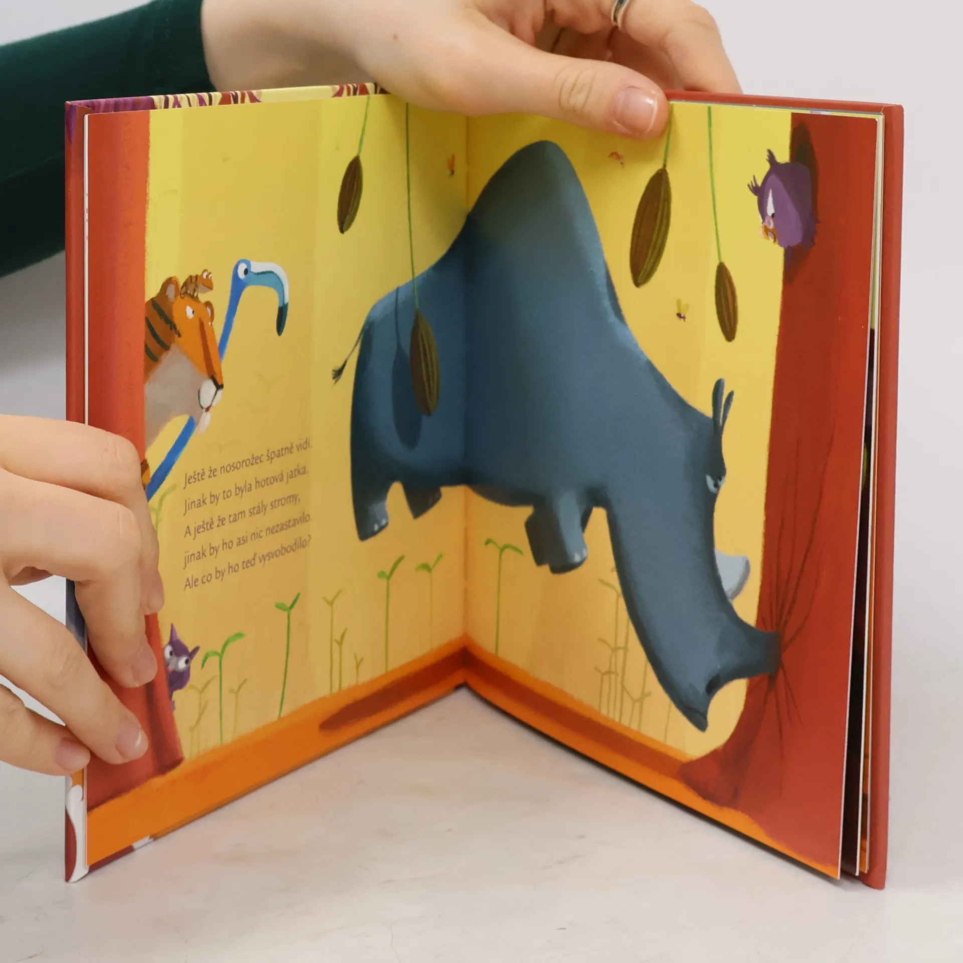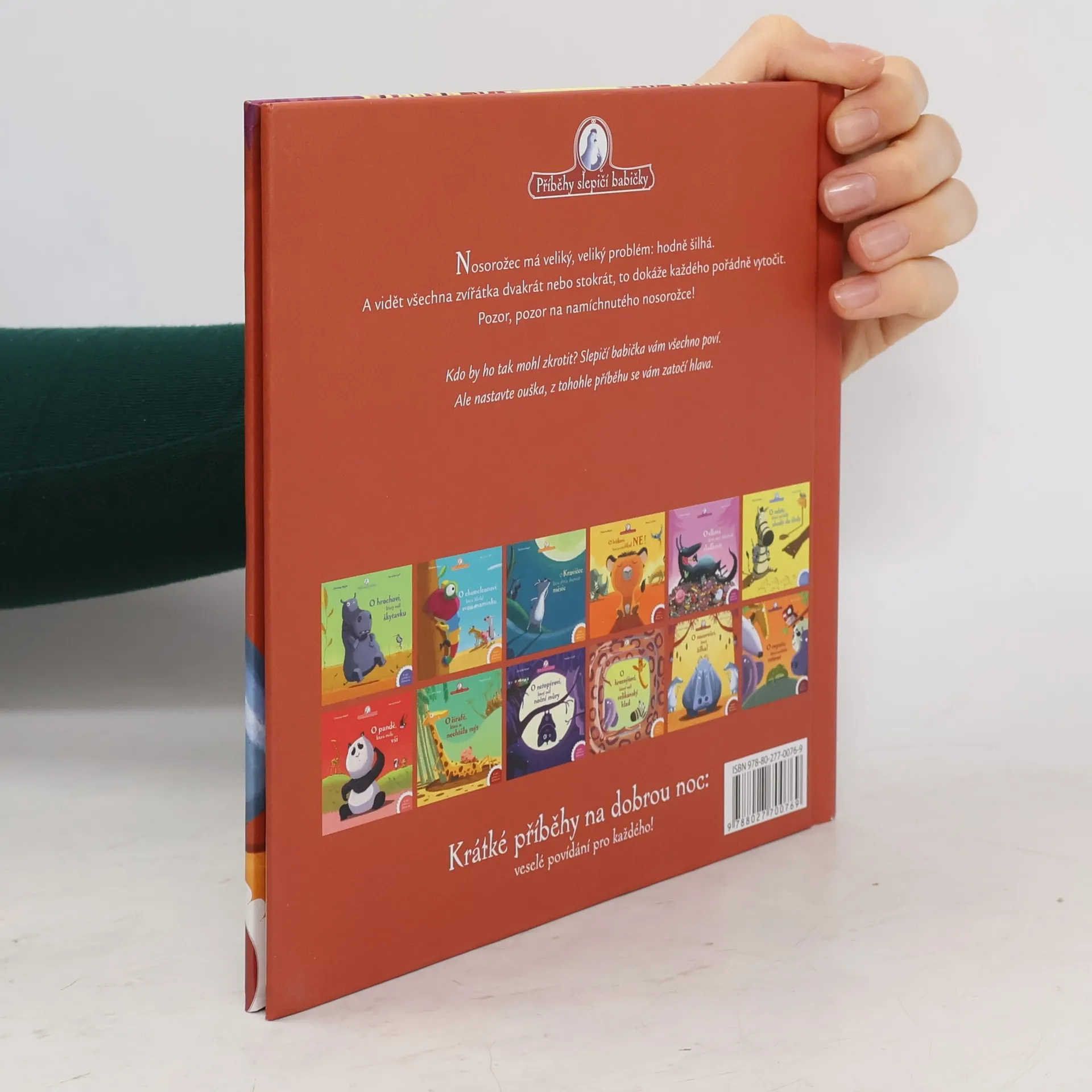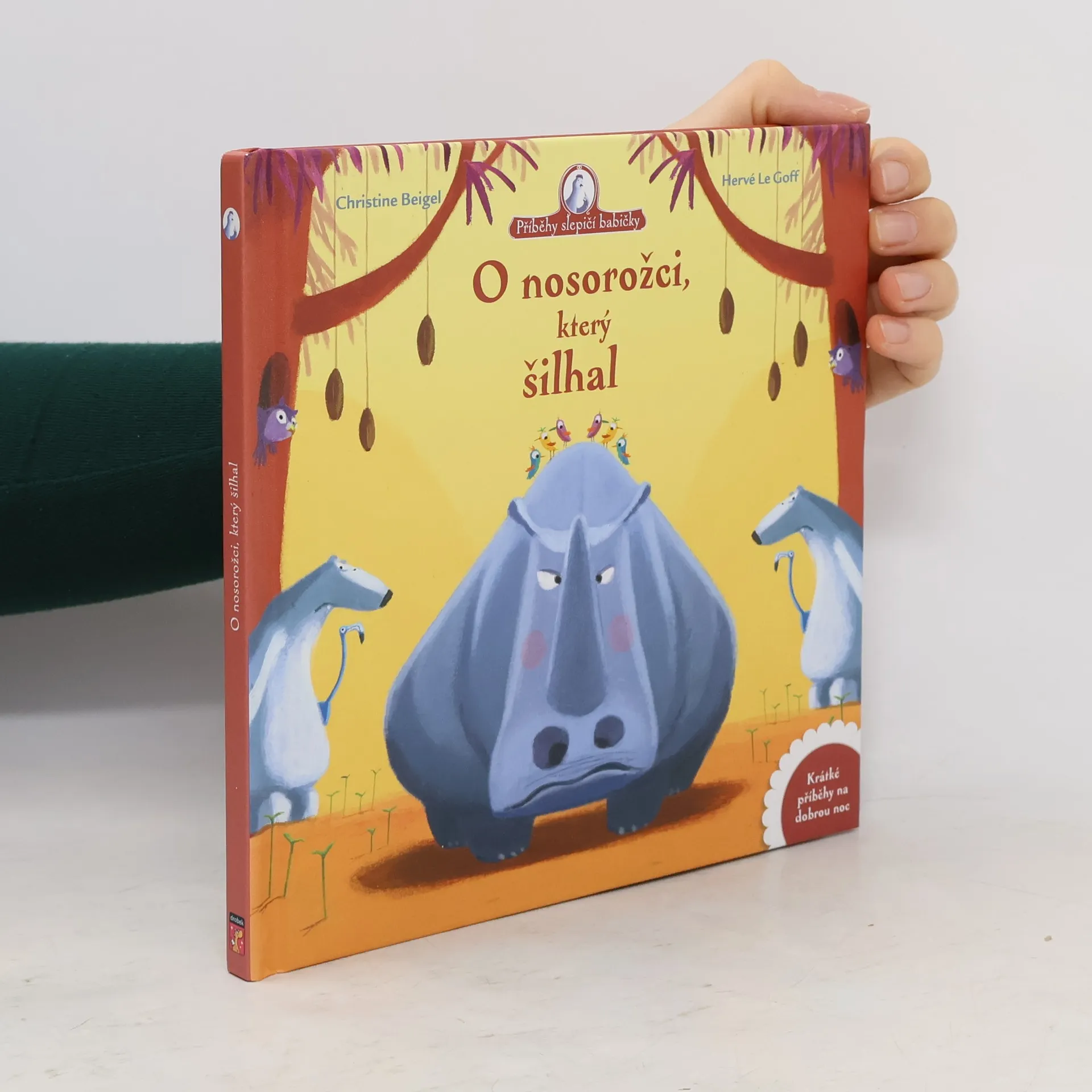 Nosorožec měl veliký problém. Oči mu šly tak šejdrem, že všechna zvířátka viděl hned několikrát. To ho pěkně namíchlo. Víte, jak to vyřeší? Dokáže si s tím poradit sám? Nebo mu někdo pomůže? Slepičí babička vám všechno poví.