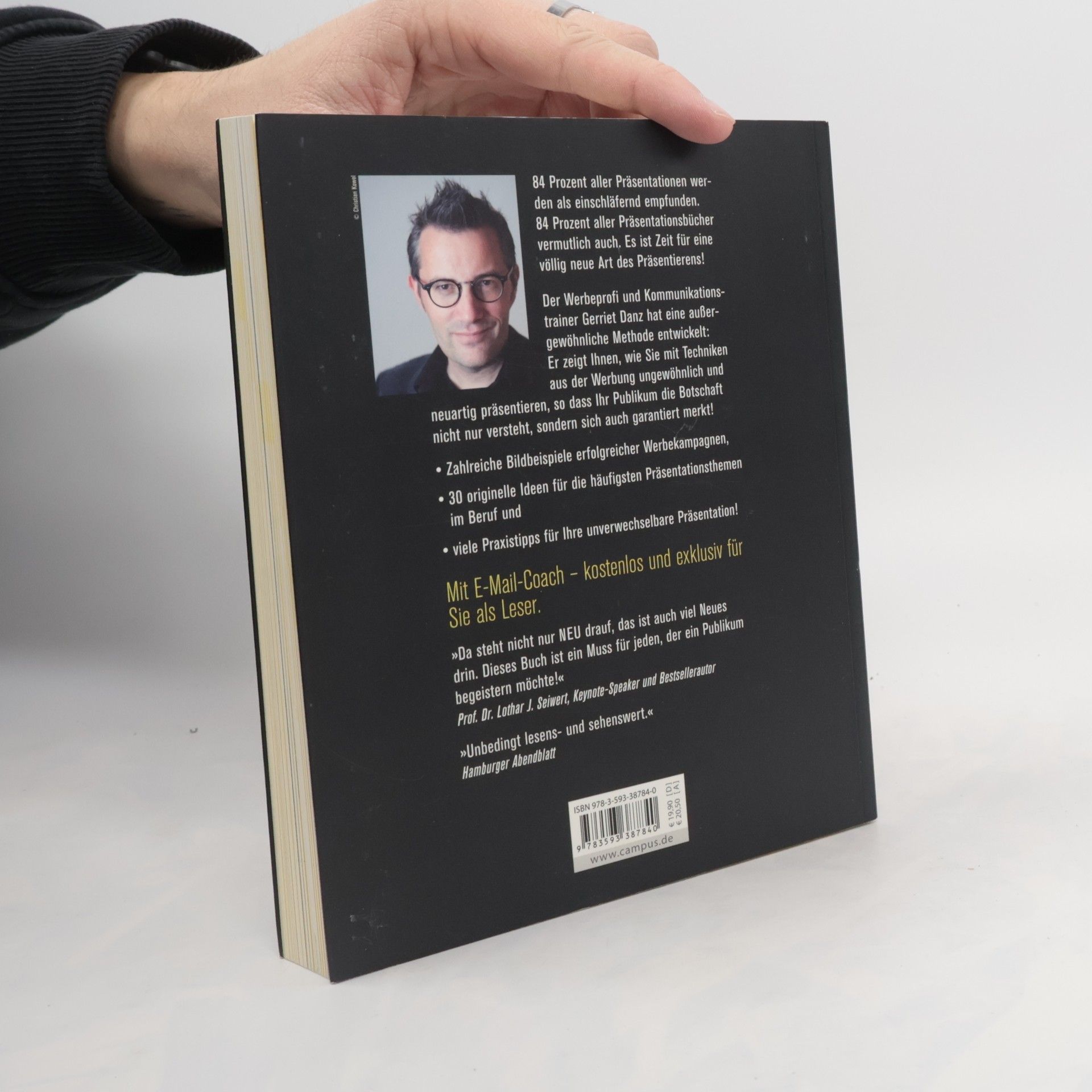 84 Prozent aller Präsentationen werden als einschläfernd empfunden. 84 Prozent aller Präsentationsbücher vermutlich auch. Es ist Zeit für eine völlig neue Art des Präsentierens! Der Werbeprofi und Kommunikationstrainer Gerriet Danz hat eine außergewöhnliche Methode entwickelt: Er zeigt Ihnen, wie Sie mit Techniken aus der Werbung ungewöhnlich und neuartig präsentieren, so dass Ihr Publikum die Botschaft nicht nur versteht, sondern sich auch garantiert merkt! - Zahlreiche Bildbeispiele erfolgreicher Werbekampagnen, - 30 originelle Ideen für die häufigsten Präsentationsthemen im Beruf und - viele Praxistipps für Ihre unverwechselbare Präsentation! Mit E-Mail-Coach - kostenlos und exklusiv für Sie als Leser. „Da steht nicht nur NEU drauf, das ist auch viel Neues drin. Dieses Buch ist ein Muss für jeden, der ein Publikum begeistern möchte!“ Prof. Dr. Lothar J. Seiwert, Keynote-Speaker und Bestsellerautor „Unbedingt lesens- und sehenswert.“ Hamburger Abendblatt