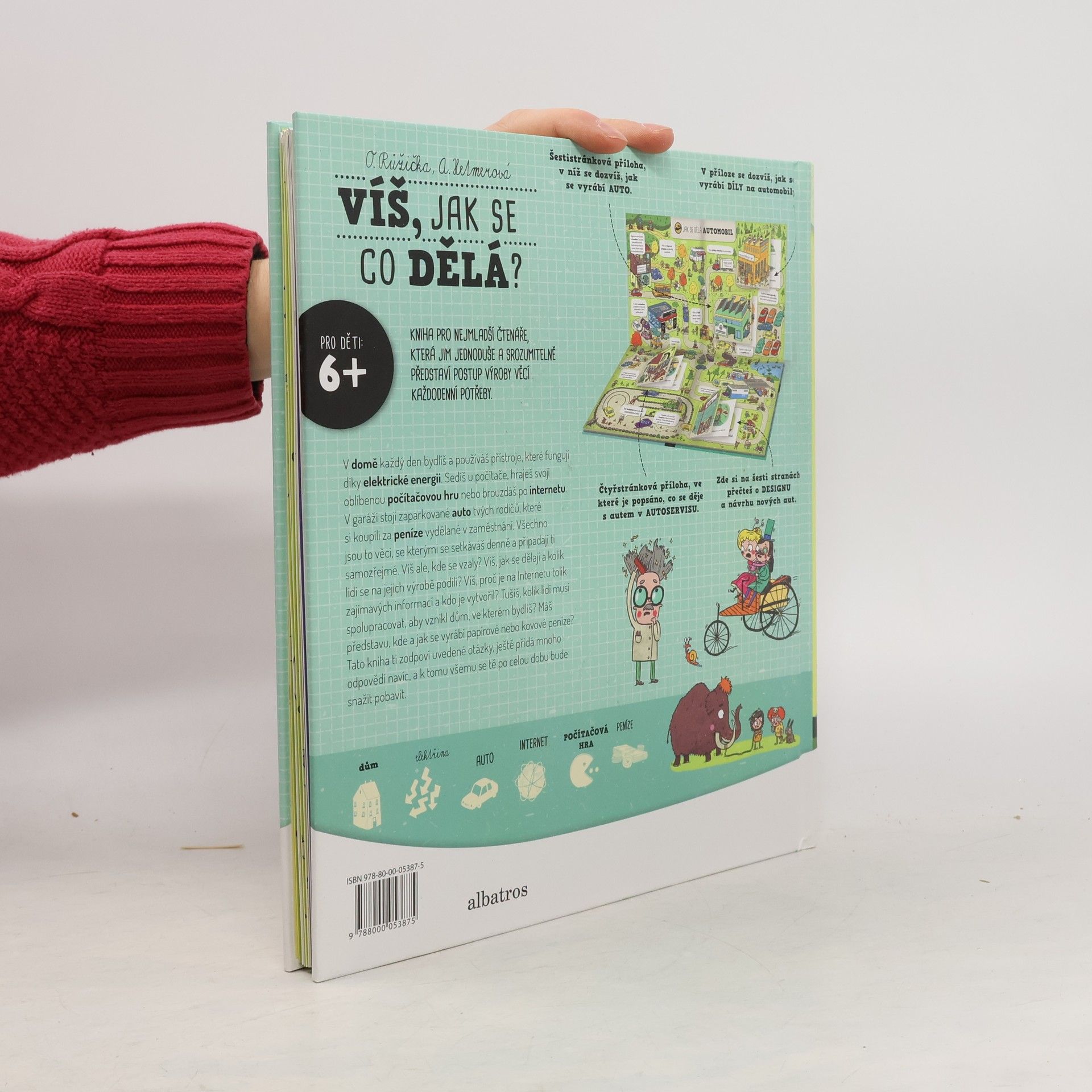 Víte, jak se vyrábí elektřina, automobil nebo jak funguje internet? Publikace s rozkládacími listy a otevíracími okénky. Pro mladší děti.Co vše je potřeba např. k postavení domu (od získávání surovin přes technologii výroby až po konečný produkt). To vše stručně a jednoduše vysvětleno na celostránkových ilustracích, doplněných krátkými texty.
