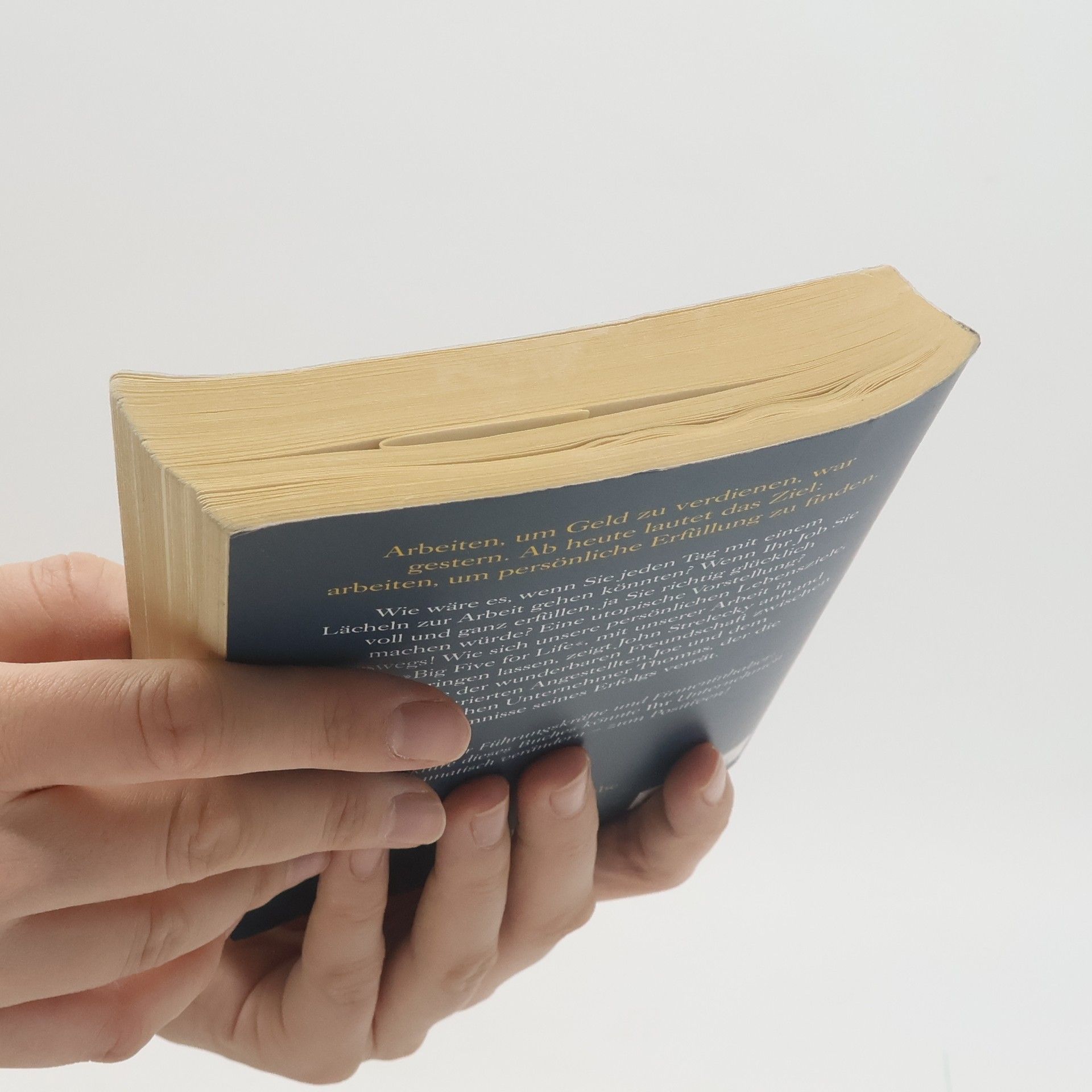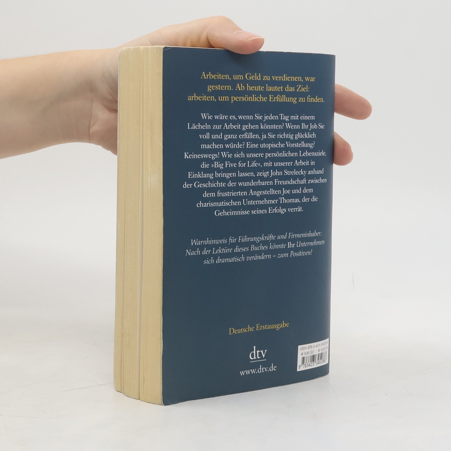 Arbeiten, um Geld zu verdienen, war gestern Durch Zufall lernt Joe, ein mit seinem Job unzufriedener Angestellter, den charismatischen Geschäftsmann Thomas kennen. Rasch entwickelt sich eine tiefe Freundschaft zwischen den beiden Männern. Thomas wird zu Joes Mentor und offenbart ihm die Geheimnisse seines Erfolgs. Er zeigt Joe, wie wichtig es ist, auch in der Arbeit erfüllt zu sein. Seine Unternehmen führt Thomas anhand zweier Leitlinien: Jeder Mitarbeiter muss seine Bestimmung sowie seine »Big Five for Life« kennen, also wissen, welche fünf Ziele er im Leben erreichen will. Diese Ideen helfen Joe, seine Wünsche zu verwirklichen. Doch Thomas will möglichst viele an seinem Wissen teilhaben lassen: Seine gesammelten Aufzeichnungen liegen hier vor Ihnen. Arbeiten, um Geld zu verdienen, war gestern. Ab heute lautet das Ziel: arbeiten, um persönliche Erfüllung zu finden.