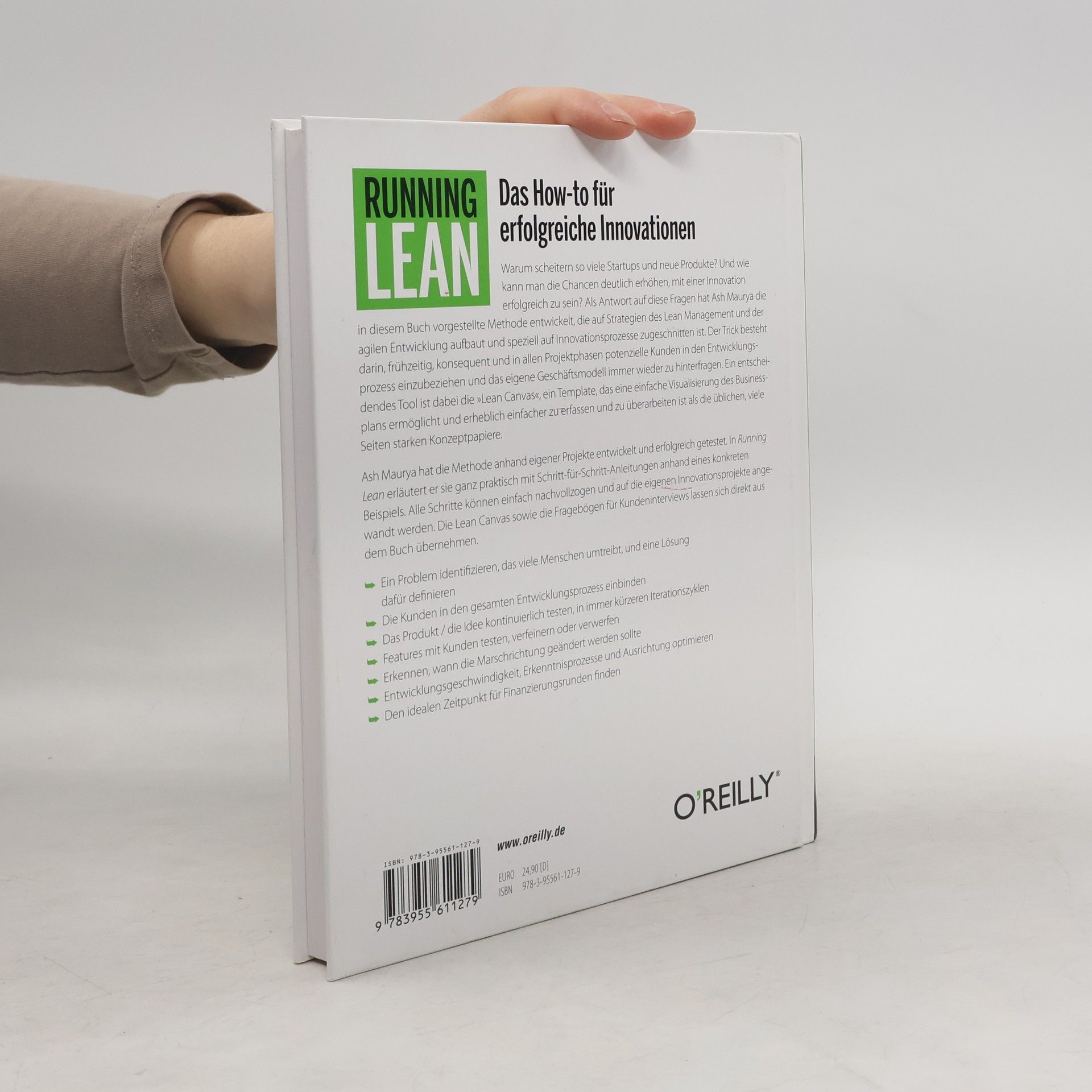 Warum scheitern viele Startups und neue Produkte? Und wie kann man die Erfolgschancen von Innovationen erhöhen? Ash Maurya hat eine Methode entwickelt, die auf Lean Management und agiler Entwicklung basiert und speziell für Innovationsprozesse konzipiert ist. Der Schlüssel liegt darin, potenzielle Kunden frühzeitig und konsequent in den Entwicklungsprozess einzubeziehen und das Geschäftsmodell regelmäßig zu hinterfragen. Ein zentrales Werkzeug ist die „Lean Canvas“, ein einfaches Template zur Visualisierung des Businessplans, das leichter zu erfassen und zu überarbeiten ist als herkömmliche Konzeptpapiere. Maurya hat diese Methode durch eigene Projekte entwickelt und getestet. In praktischen Schritt-für-Schritt-Anleitungen zeigt er, wie man die Methode anhand eines konkreten Beispiels anwendet. Alle Schritte sind nachvollziehbar und lassen sich auf eigene Innovationsprojekte übertragen. Die Lean Canvas und Fragebögen für Kundeninterviews sind direkt im Buch enthalten. Die Methode umfasst das Identifizieren eines relevanten Problems, die Einbindung von Kunden in den Entwicklungsprozess, kontinuierliches Testen des Produkts in kurzen Iterationen, das Verfeinern oder Verwerfen von Features, das Erkennen notwendiger Kursänderungen, die Optimierung von Entwicklungsgeschwindigkeit und Erkenntnisprozessen sowie das Finden des idealen Zeitpunkts für Finanzierungsrunden.