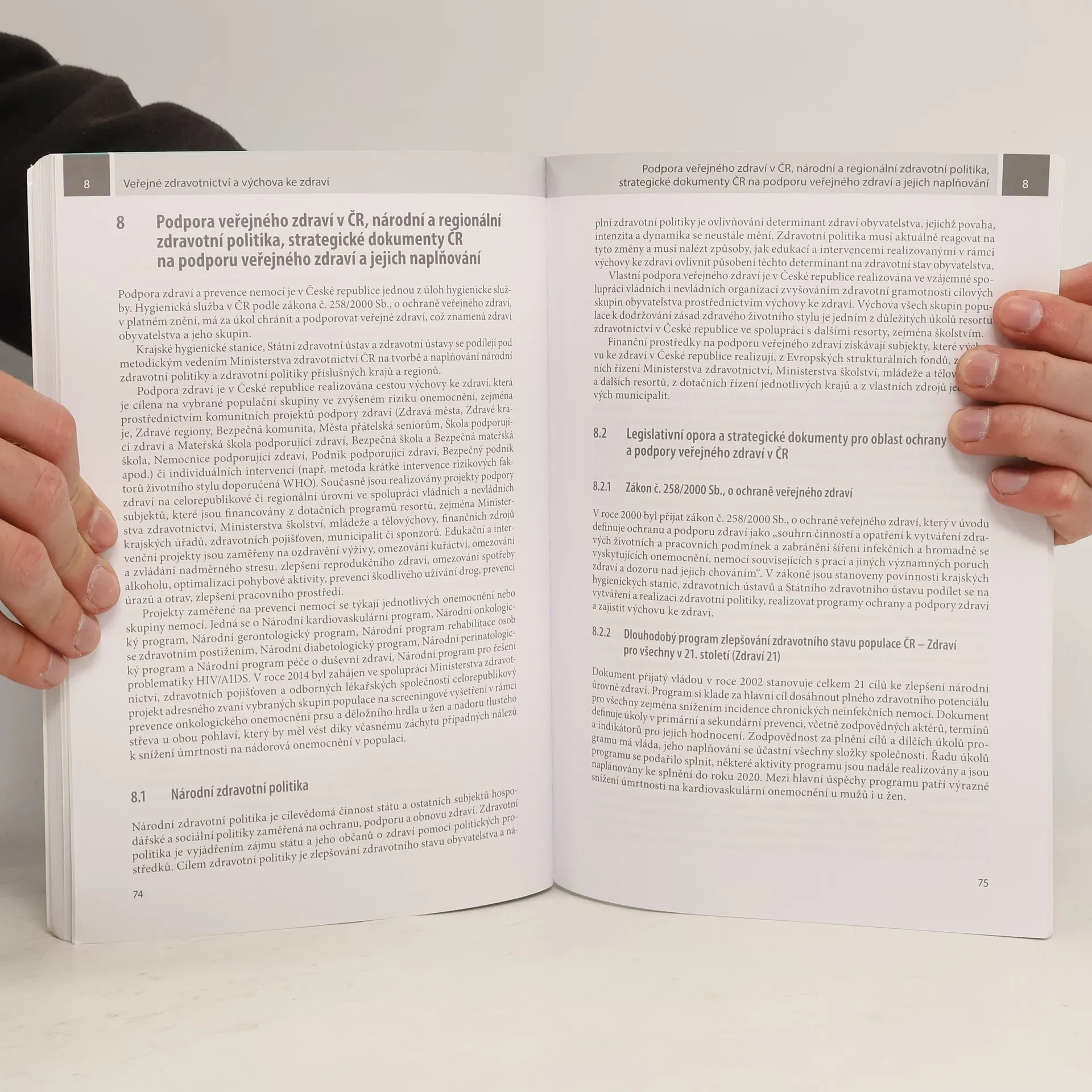 Učebnice přináší aktuální informace o ochraně zdraví, prevenci nemocí, zdravém životním stylu a veřejném zdravotnictví v ČR a EU. Seznamuje s moderními metodami výchovy ke zdravotní gramotnosti podle doporučení WHO a je určena studentům bakalářských programů nelékařských zdravotnických oborů. Publikace vysvětluje základní pojmy veřejného zdravotnictví a jeho problematiku na úrovni EU a ČR, včetně zdravotních a sociálních determinant ovlivňujících zdraví populace a zdravotnických systémů v rámci EU. Dále se zaměřuje na národní zdravotní a sociální politiku ČR, její řízení a systém financování léčebně preventivní péče. Zmiňuje strategické dokumenty WHO, EU a ČR, legislativu týkající se zdravotních služeb a podmínek jejich poskytování, jakož i demografii a zdravotní stav populace ČR. Publikace hodnotí statistické ukazatele a dlouhodobé vývojové trendy, porovnává zdravotní stav populace ČR s vybranými státy EU. Kniha se také věnuje determinantům životního stylu a chování, které ovlivňují zdraví. Prezentuje nejnovější metody výchovy ke zdravotní gramotnosti a výsledky studií o zdravotní gramotnosti obyvatel EU včetně ČR. Zohledňuje úlohu zdravotnických pracovníků při zvyšování zdravotní gramotnosti populace a úspěšné komunitní projekty v ČR, které podporují odpovědnost obyvatel za vlastní zdraví.