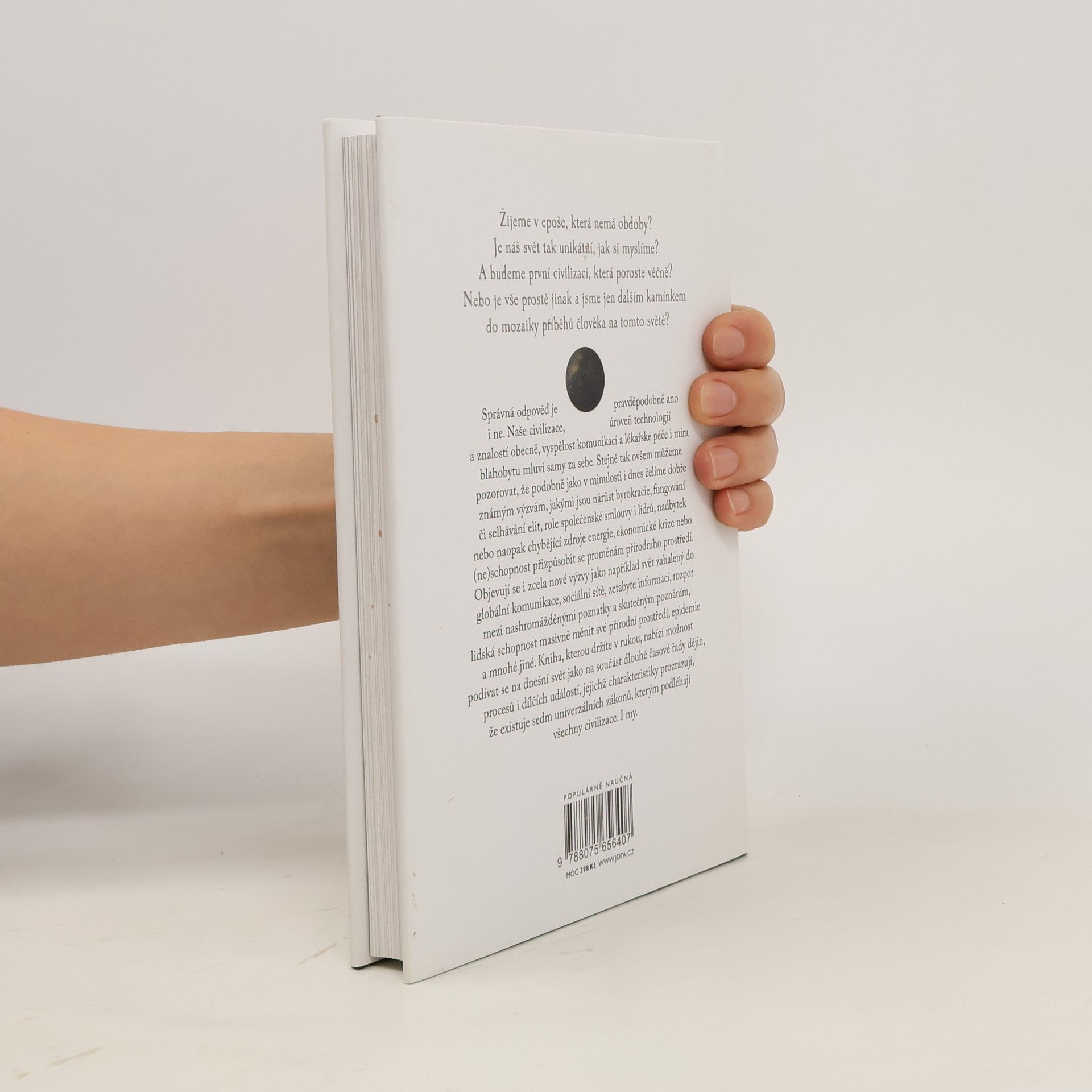Žijeme v epoše, která nemá obdoby? Je náš svět tak unikátní, jak si myslíme? A budeme první civilizací, která poroste věčně? Nebo je vše prostě jinak a jsme jen dalším kamínkem do mozaiky příběhů člověka na tomto světě? Správná odpověď je pravděpodobně ano i ne. Naše civilizace, úroveň technologií a znalostí obecně, vyspělost komunikací a lékařské péče i míra blahobytu mluví samy za sebe. Stejně tak ovšem můžeme pozorovat, že podobně jako v minulosti i dnes čelíme dobře známým výzvám, jakými jsou nárůst byrokracie, fungování či selhávání elit, role společenské smlouvy i lídrů, nadbytek nebo naopak chybějící zdroje energie, ekonomické krize nebo (ne)schopnost přizpůsobit se proměnám přírodního prostředí. Objevují se i zcela nové výzvy jako například svět zahalený do globální komunikace, sociální sítě, kvanta informací, rozpor mezi nashromážděnými poznatky a skutečným poznáním, lidská schopnost masivně měnit své přírodní prostředí a mnohé jiné. Kniha nabízí možnost podívat se na dnešní svět jako součást dlouhé časové řady dějin, procesů i dílčích událostí, jejichž charakteristiky prozrazují, že existuje sedm univerzálních zákonů, kterým podléhají všechny civilizace.