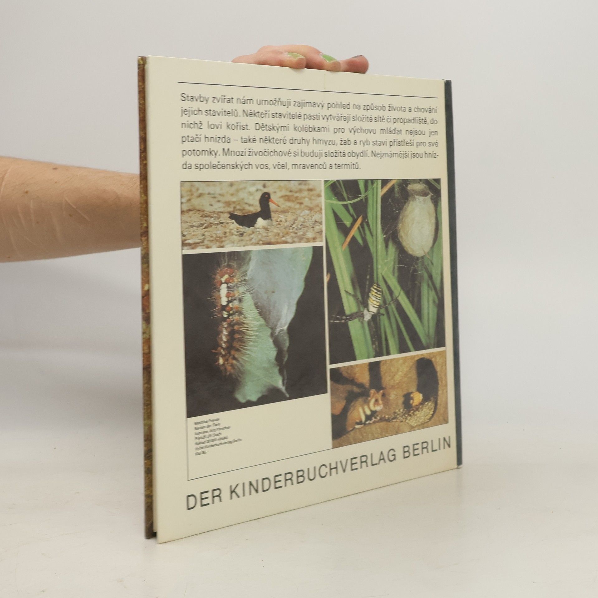 Stavby zvířat nám umožňují zajímavý pohled na způsob života a chování jejich stavitelů. Někteří stavitelé pastí vytvářejí složité sítě či propadliště, do nichž loví kořist. Dětskými kolébkami pro výchovu mláďat nejsou jen ptačí hnízda - také některé druhy hmyzu, žab a ryb staví přístřeší pro své potomky. Mnozí živočichové si budují složitá obydlí. Nejznámější jsou hnízda společenských vos, včel, mravenců a termitů.