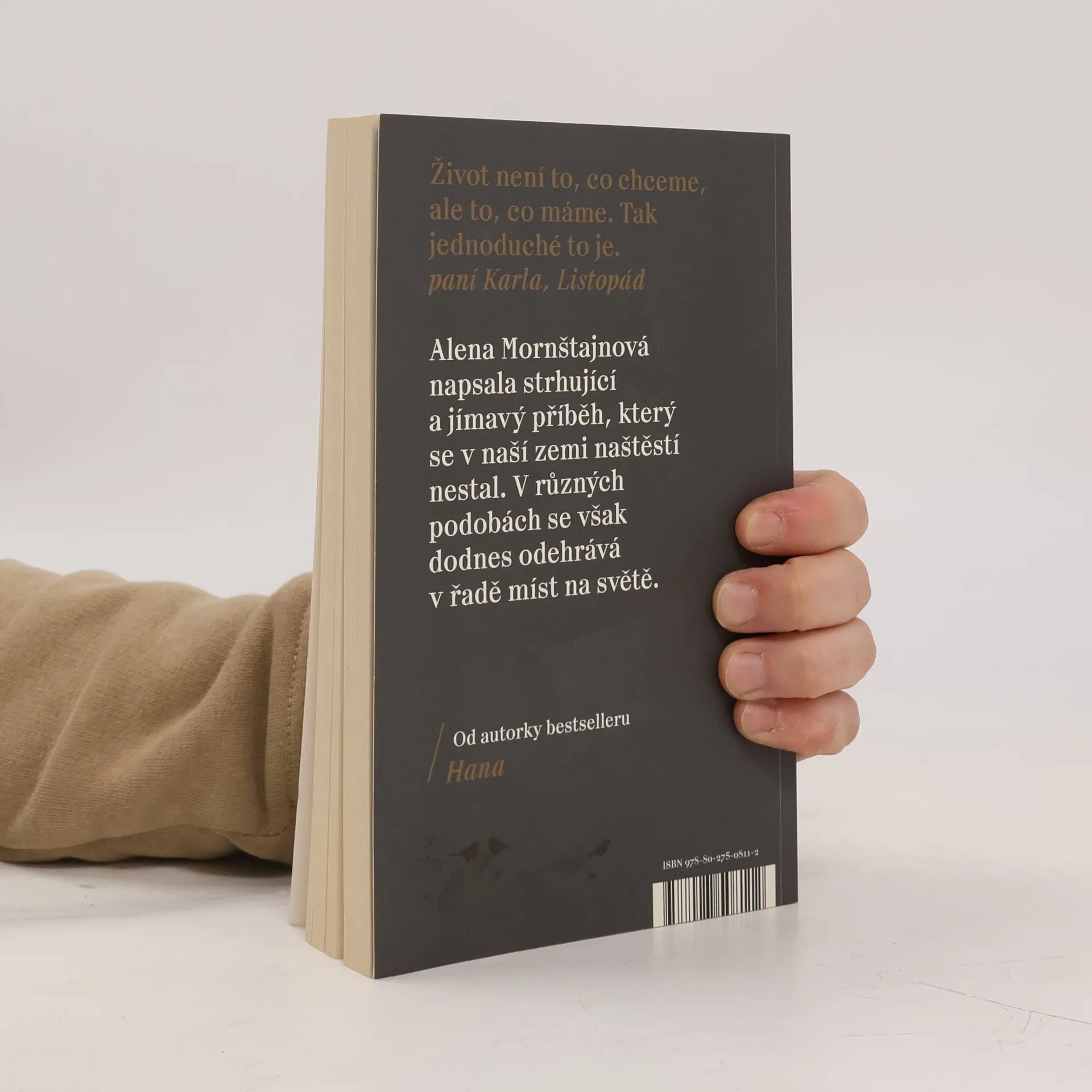 Ptali jste se někdy sami sebe, jaký by byl váš život, kdyby v listopadu 1989 dopadlo všechno jinak? Jaké by byly naše osudy, kdyby komunismus neskončil a my zůstali za železnou oponou oddělující nás od světa i jeden od druhého? Jedna z nejúspěšnějších českých spisovatelek Alena Mornštajnová opět překvapuje. Její nový román je dramatickým příběhem obyčejné rodiny, kterou velké dějiny jedné listopadové noci rozdělí a postaví proti sobě. Sledujeme příběh Marie Hajné, která je kvůli účasti na demonstracích zatčena a odsouzena ke dvaceti letům vězení. Ví, že už nejspíš nikdy neuvidí vyrůstat své děti, a při životě ji udržují jen dopisy. A taky naděje, že se nakonec přece jen shledají. Vedle toho se odvíjí příběh dívenky Magdaleny, která je odebrána rodičům a umístěna do „ozdravovny“, v níž se vychovávají nové komunistické kádry. Jejich osudy se jednoho dne protnou, ale zcela jinak, než si obě představovaly a přály. Od autorky bestselleru Hana.
