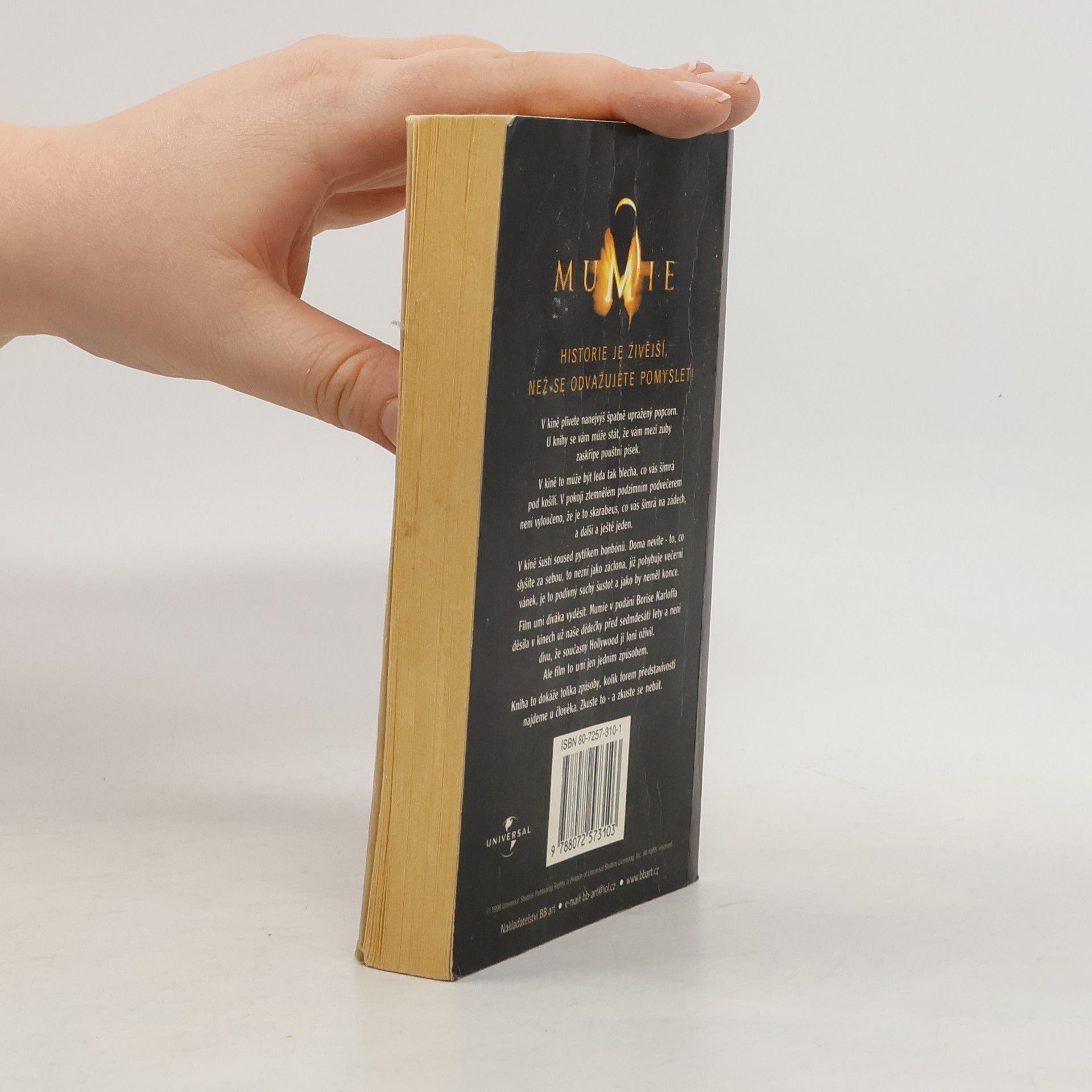 Podle filmového scénáře Stephena Sommerse. Pradávné zlo se vrací z hrobu… Asi před třemi tisíci lety byl Imhotep, egyptský velekněz boha Osirise, za své rouhačské a hříšné zločiny mumifikován, pohřben zaživa a odsouzen k věčnému prokletí… Pak se přeneseme v čase do dvacátých let našeho století. Temperamentní americký dobrodruh a voják cizinecké legie Rick O´Connell hledá v Egyptě své štěstí. Čirou náhodou objeví dávno ztracené Město mrtvých. Jeho objev je pro anglickou knihovnici Evelyn Carnahanovou archeologický nález století. Ve starověké Hamanaptře se nacházejí četné poklady starého Egypta – a možná také odpověď na tajuplné otázky související se životem a smrtí. O´Connell dostane nabídku zavést Evelininu archeologickou expedici do pouště, ale hledání Města mrtvých pro něj nepředstavuje příliš výhodný způsob, jak si vydělat peníze. On i členové jeho expedice musejí překonávat strašlivé, životu nebezpečné nástrahy, uniknout příšerným kusadlům smrtících brouků – skarabeů a vést boj se starověkou sektou med-jai. A přesně ve chvíli, kdy chtějí konečně nabrat dech, se na zem vrací po tisíciletí pohřbené zlo – kdysi prokletá Mumie…