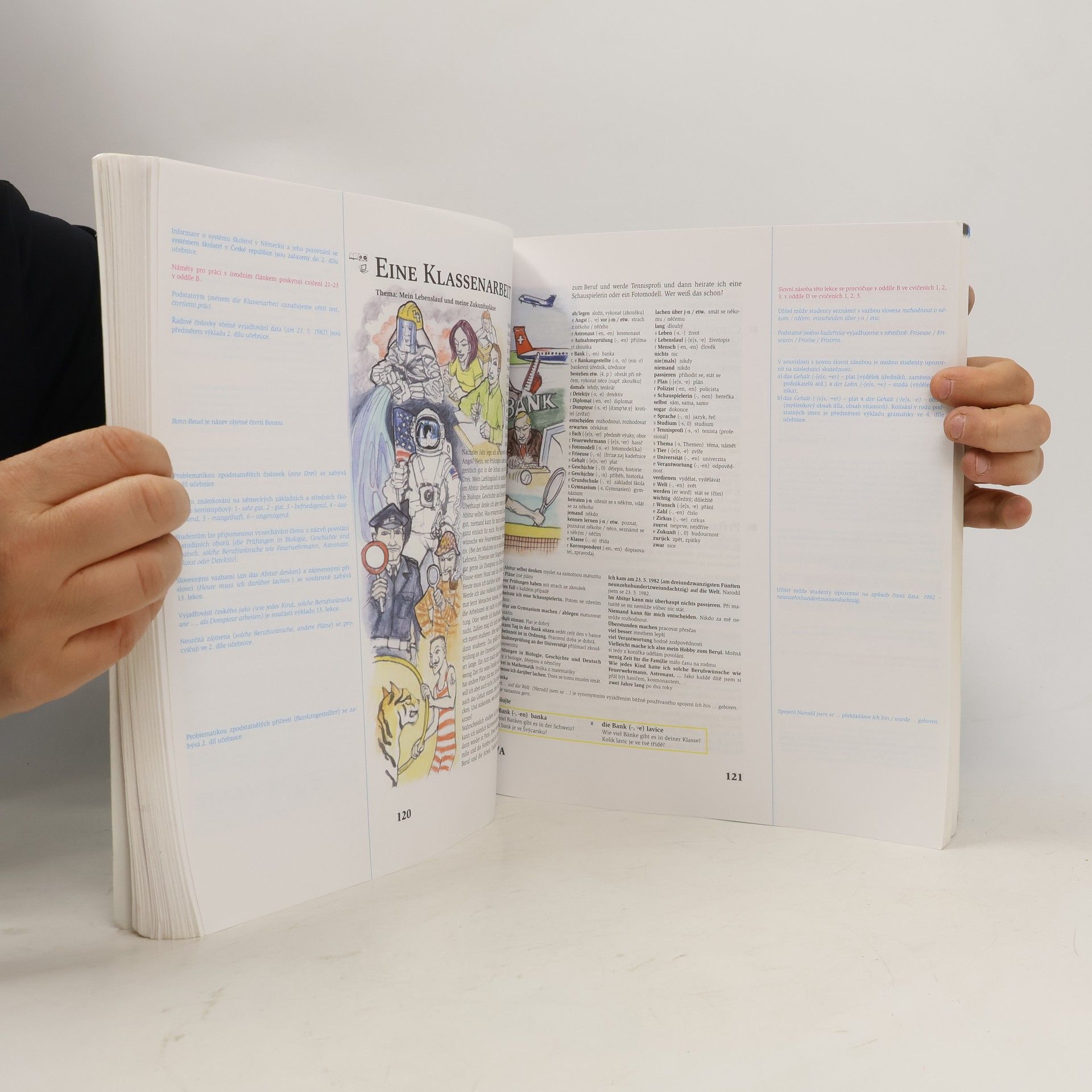 Obsah knihy pro učitele je totožný s obsahem knihy pro studenty. Na rozšířených okrajích učitelé najdou navíc klíč k jednotlivým cvičením, nejrůznější odkazy, poznámky a náměty na další činnost v hodině. Nedílnou součástí knihy pro učitele jsou testy určené ke kopírování.