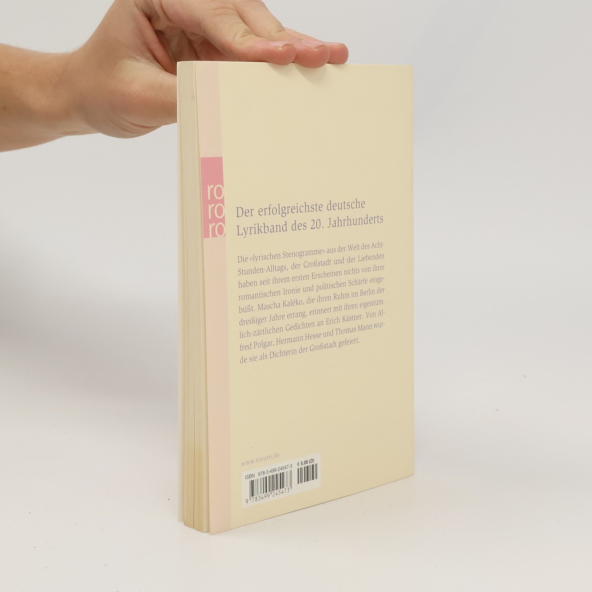 Der erfolgreichste deutsche Lyrikband des 20. Jahrhunderts Die „lyrischen Stenogramme“ aus der Welt des Acht-Stunden-Alltags, der Großstadt und der Liebenden haben seit ihrem ersten Erscheinen nichts von ihrer romantischen Ironie und politischen Schärfe eingebüßt. Mascha Kaléko, die ihren Ruhm im Berlin der dreißiger Jahre errang, erinnert mit ihren eigentümlich-zärtlichen Gedichten an Erich Kästner. Von Alfred Polgar, Hermann Hesse und Thomas Mann wurde sie als Dichterin der Großstadt gefeiert.