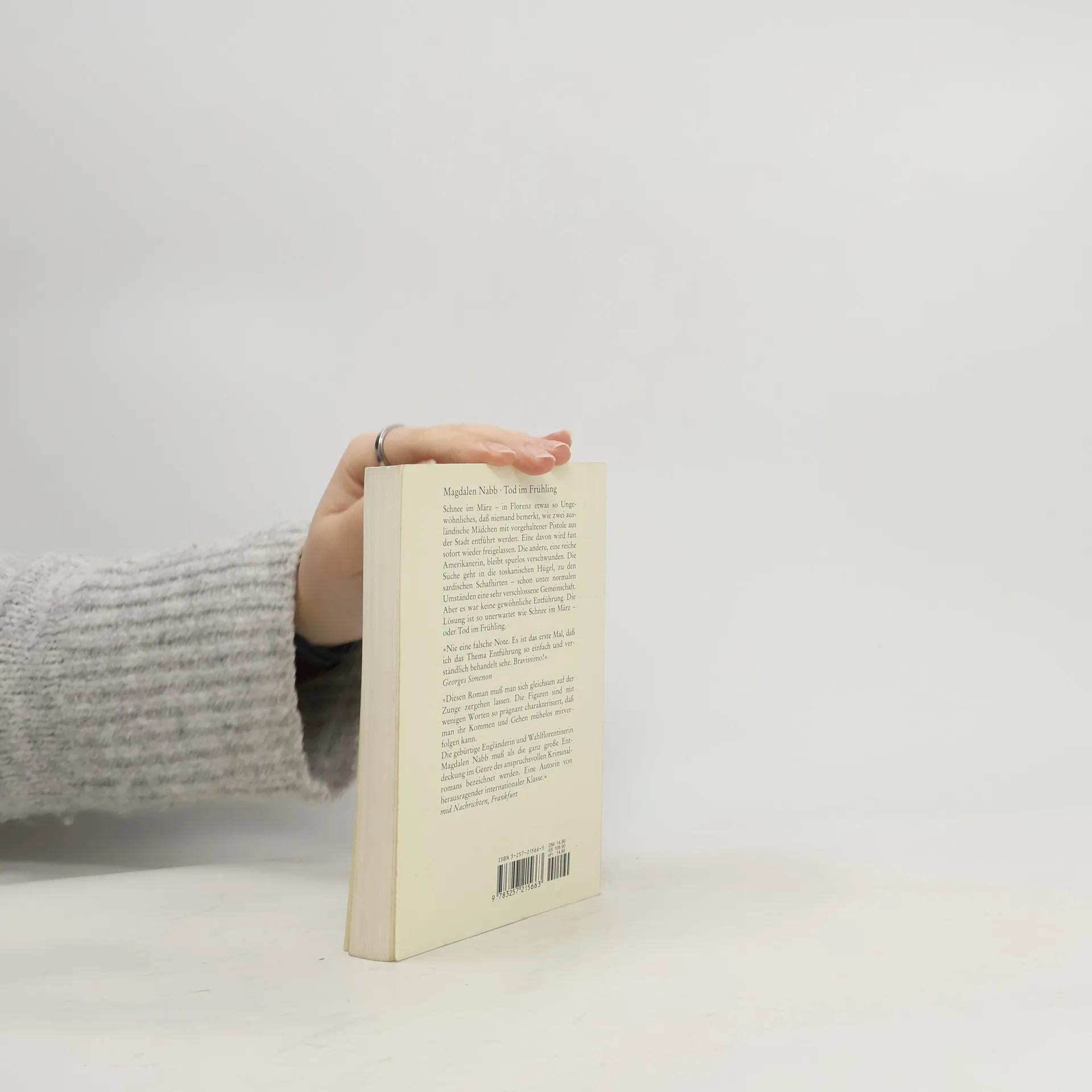 Schnee im März in Florenz etwas so Ungewöhnliches, daß niemand bemerkt, wie zwei ausländische Mädchen mit vorgehaltener Pistole aus der Stadt entführt werden. Eine davon wird fast sofort wieder freigelassen. Die andere, eine reiche Amerikanerin, bleibt spurlos verschwunden. Die Suche geht in die toskanischen Hügel, zu den sardischen Schafhirten schon unter normalen Umständen eine sehr verschlossene Gemeinschaft. Aber es war keine gewöhnliche Entführung. Die Lösung ist so unerwartet wie Schnee im März oder Tod im Frühling.