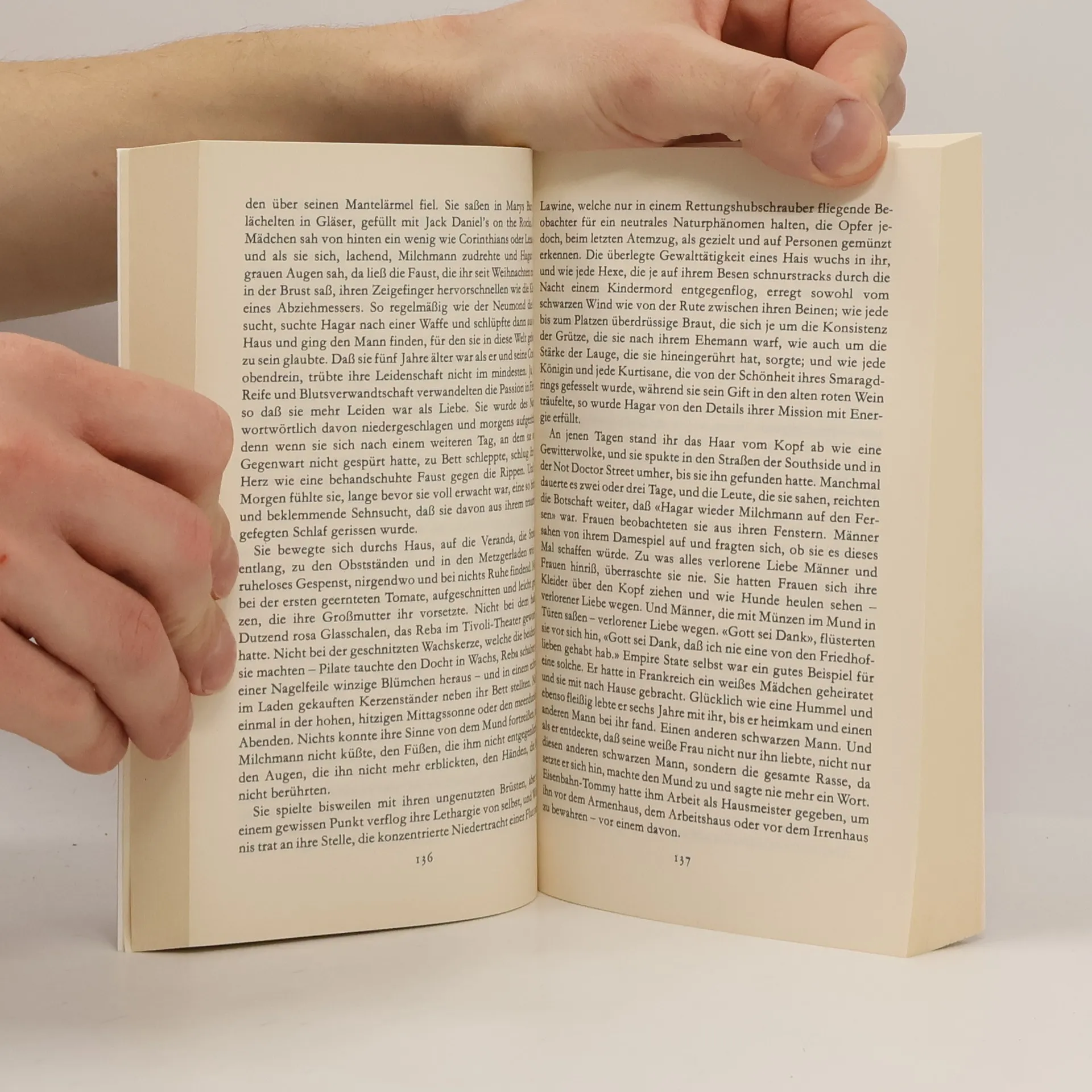 "Solomons Lied", in den USA 1977 erschienen, war - nach "Sehr blaue Augen" und "Sula" - ihr dritter Roman, in dem sie mit magischer Klugheit und souveränder Phantasie die Familie der Deads heraufbeschwört: die in trister Ehe welkende Ruth, ihren Sohn Milchmann, der sich danach sehnt, fliegen zu lernen, und die Suche nach dem mythischen Familienschatz aufnimmt, begleitet von der zauberkräftigen Heilerin Pilate, verfolgt von ihrer liebeskranken Enkelin Hagar ... Eine große Erzählerin zeigt uns hier, daß noch zu dem unbegreiflichsten Geschehen ein verborgener Schlüssel existiert. Wer Toni Mossisons Gestalten einmal begegnet ist, dem bleiben sie für immer Gefährten.