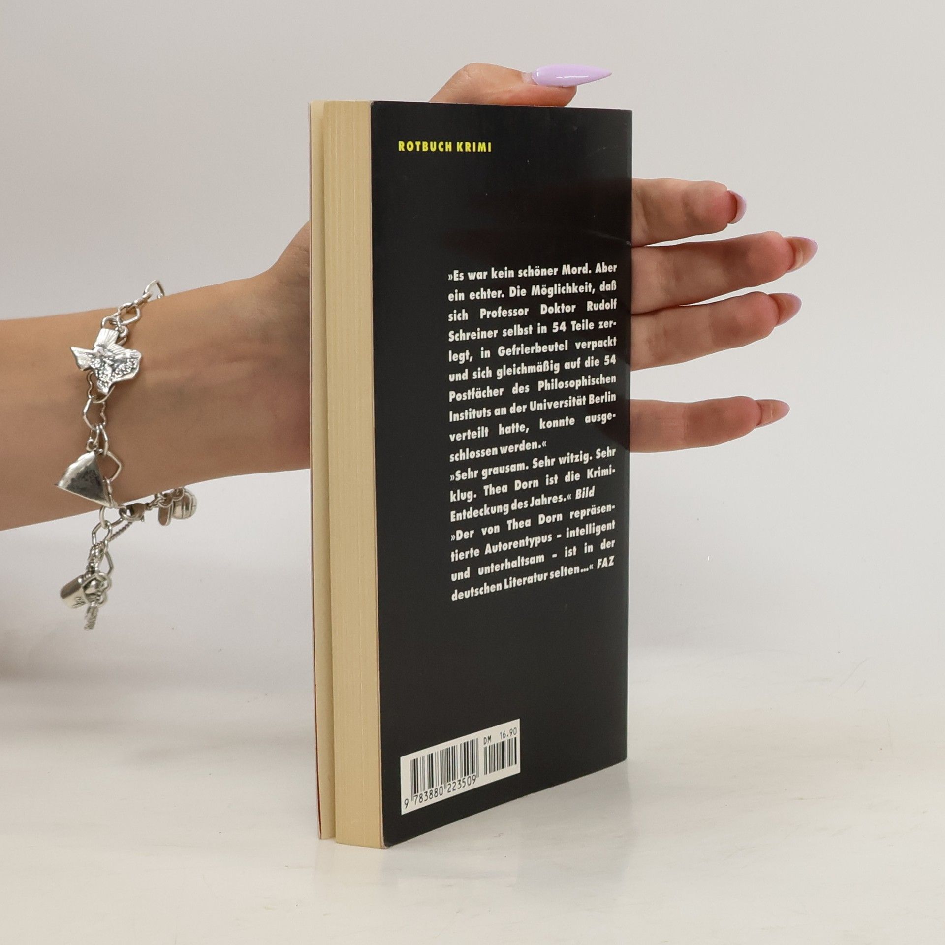 Alles beginnt mit einem Mord am philosophischen Institut der Universität Berlin: Der allseits unbeliebte Professor Rudolf Schreiner liegt sauber portioniert in den Postfächern seiner Kollegen. Als Rebecca Lux, die scharfzüngige Direktorin des Instituts, unter Mordverdacht gerät, ruft sie ihre ehemalige Studentin Anja Abakowitz zu Hilfe. Doch die will mit der Angelegenheit nichts zu tun haben. Erst als weiteres Denkerblut fließt, sieht sie sich gezwungen einzugreifen...