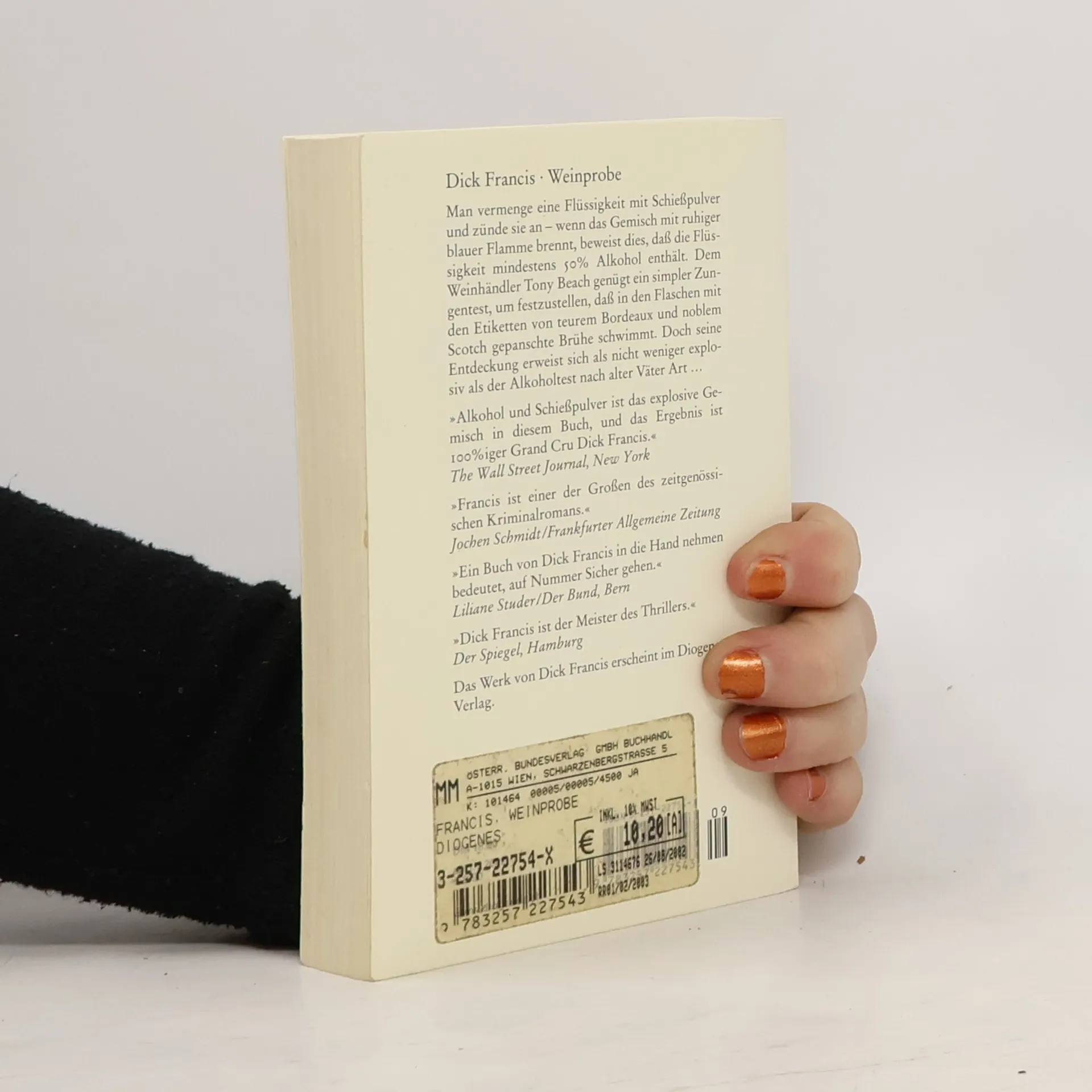 Man vermenge eine Flüssigkeit mit Schießpulver und zünde sie an wenn das Gemisch mit ruhiger blauer Flamme brennt, beweist dies, dass die Flüssigkeit mindestens 50% Alkohol enthält. Dem Weinhändler Tony Beach genügt ein simpler Zungentest, um festzustellen, dass in den Flaschen mit dem teuren Bordeaux und dem noblen Scotch gepanschte Brühe schwimmt. Doch seine Entdeckung erweist sich als ziemlich explosiv