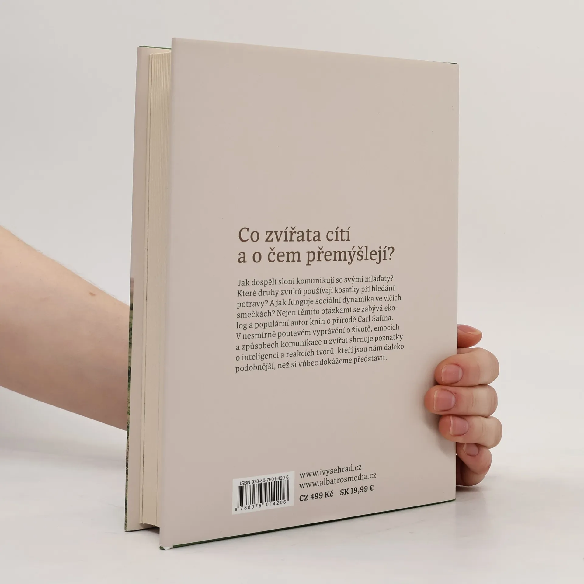 Jak dospělí sloni komunikují se svými mláďaty? Které druhy zvuků používají kosatky při hledání potravy? A jak funguje sociální dynamika ve vlčích smečkách? Nejen těmito otázkami se zabývá ekolog a populární autor knih o přírodě Carl Safina. V nesmírně poutavém vyprávění o životě, emocích a způsobech komunikace u zvířat shrnuje poznatky o inteligenci a reakcích tvorů, kteří jsou nám daleko podobnější, než si vůbec dokážeme představit.