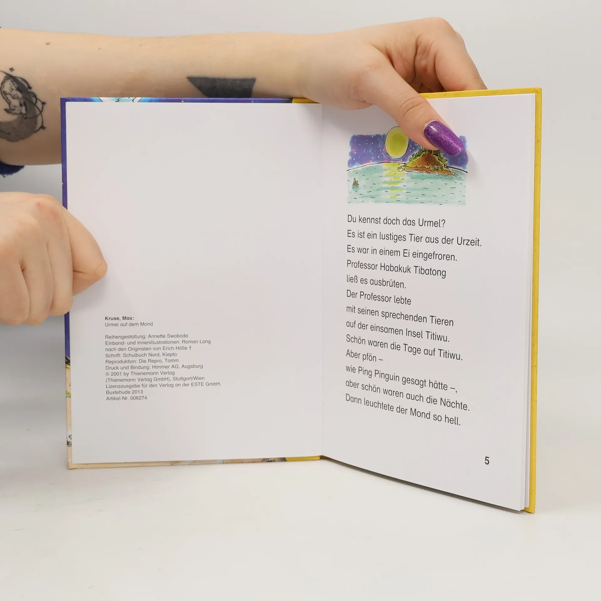 Mit Thienemanns ABC-Piraten werden alle Buchstaben erobert, während Urmels Weltraumabenteuer für Einsteiger das Lesenlernen spannend gestaltet. Ab 6 Jahren geht die große Reisevorbereitung auf Titiwu los: Professor Tibatong und seine Freunde fliegen zum Mond! Das Urmel ist besonders aufgeregt, denn vielleicht gibt es dort noch mehr Urmel! Max Kruse, 1921 in Bad Kösen geboren, ist der Autor. Seine Mutter, Käthe Kruse, war eine berühmte Puppenschöpferin. Nach dem Abitur in Weimar studierte er in Jena bis zur Schließung der Universitäten 1943. 1945 heiratete er und baute die Puppenfabrik seiner Mutter in Bad Pyrmont wieder auf. Da er schon immer Schriftsteller werden wollte, übergab er 1958 die Firma an seine Schwester und zog nach München, wo er als Werbetexter arbeitete und erste Kinderbücher verfasste. Sein Durchbruch kam 1965 mit der Verfilmung von „Der Löwe ist los“ durch die Augsburger Puppenkiste. Heute liegt die Gesamtauflage seiner Bücher bei über drei Millionen Exemplaren. Max Kruse lebt im Loisachtal bei München. In einer Leseprobe äußert das Urmel den Wunsch, den Mond zu besuchen, doch der Professor erklärt, dass es sehr schwierig sei, dorthin zu gelangen. Wutz hingegen sieht den Mond ganz anders und träumt von seltsamen Wesen, die dort leben könnten. Das Urmel steht vor der Entscheidung, wem es glauben soll: Wutz mit ihren Märchen oder dem Professor, der sagt, der Mond sei unbewohnt.