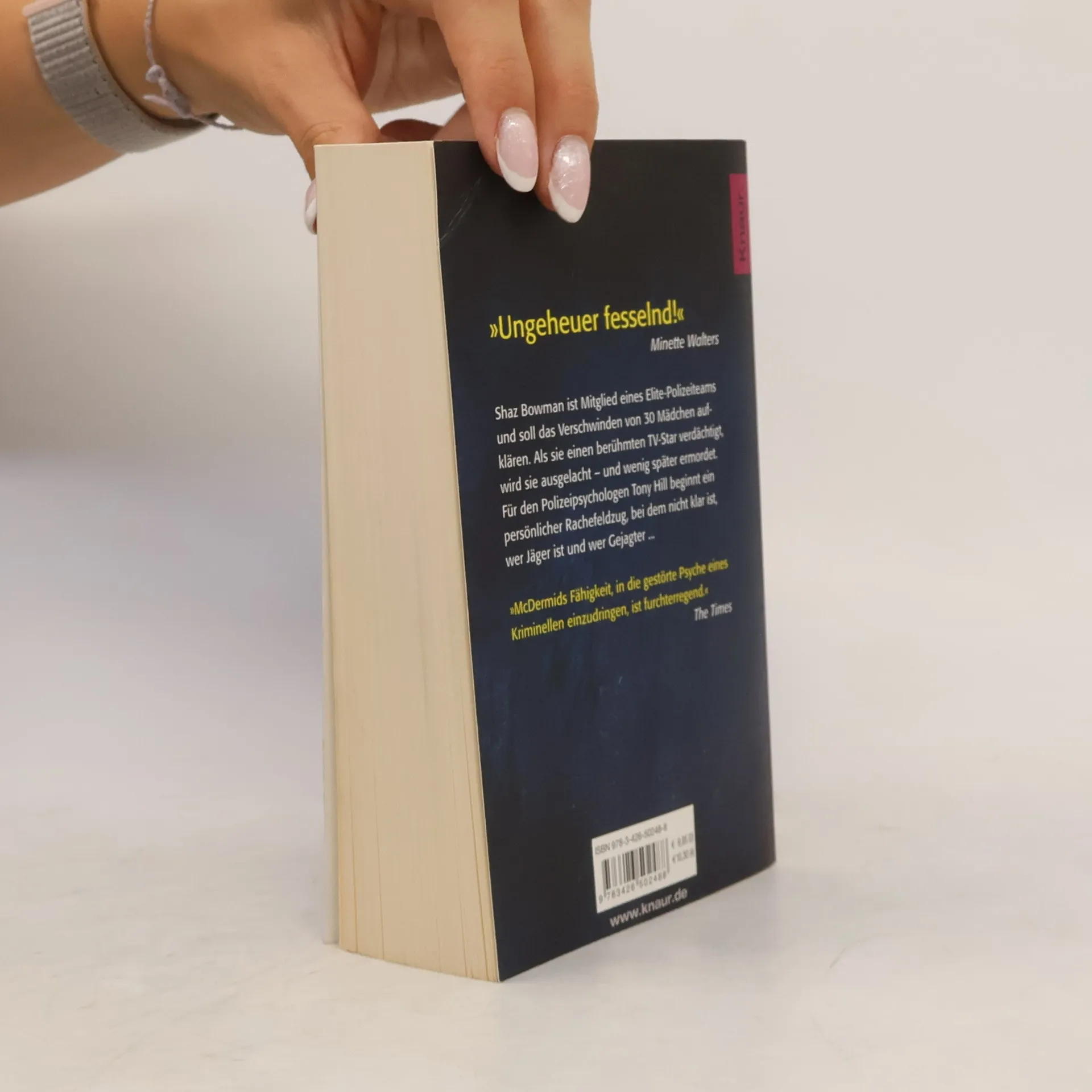 Im zweiten Band der fesselnden Thriller-Serie von Val McDermid wird der Polizei-Psychologe und Profiler Tony Hill mit einem Elite-Team konfrontiert, als er ihnen eine Liste von 30 vermissten Mädchen zur Verfügung stellt. Die junge Polizistin Shaz Bowman entdeckt überraschende Verbindungen zwischen sieben dieser Fälle und verdächtigt den berühmten TV-Star Jacko Vance, dessen Veranstaltung die Opfer vor ihrem Verschwinden besuchten. Doch ihre Warnungen werden nicht ernst genommen und sie wird verspottet. Das ändert sich schlagartig, als Tony Hill Shaz verstümmelt in ihrer Wohnung findet. Hatte sie mit ihren gewagten Theorien doch recht? Der Thriller entfaltet sich in einem nervenaufreibenden Katz-und-Maus-Spiel, als ein weiteres Mädchen verschwindet. Es beginnt ein Wettlauf gegen die Zeit, um das Leben des Mädchens zu retten. McDermids eindringliche Darstellung der kriminellen Psyche und ihr Talent, Spannung zu erzeugen, machen diesen Thriller zu einem echten Pageturner. Nach dem ersten Band „Das Lied der Sirenen“ folgt hier ein weiterer packender Teil der Carol Jordan & Tony Hill-Serie, der die Leser in seinen Bann zieht.