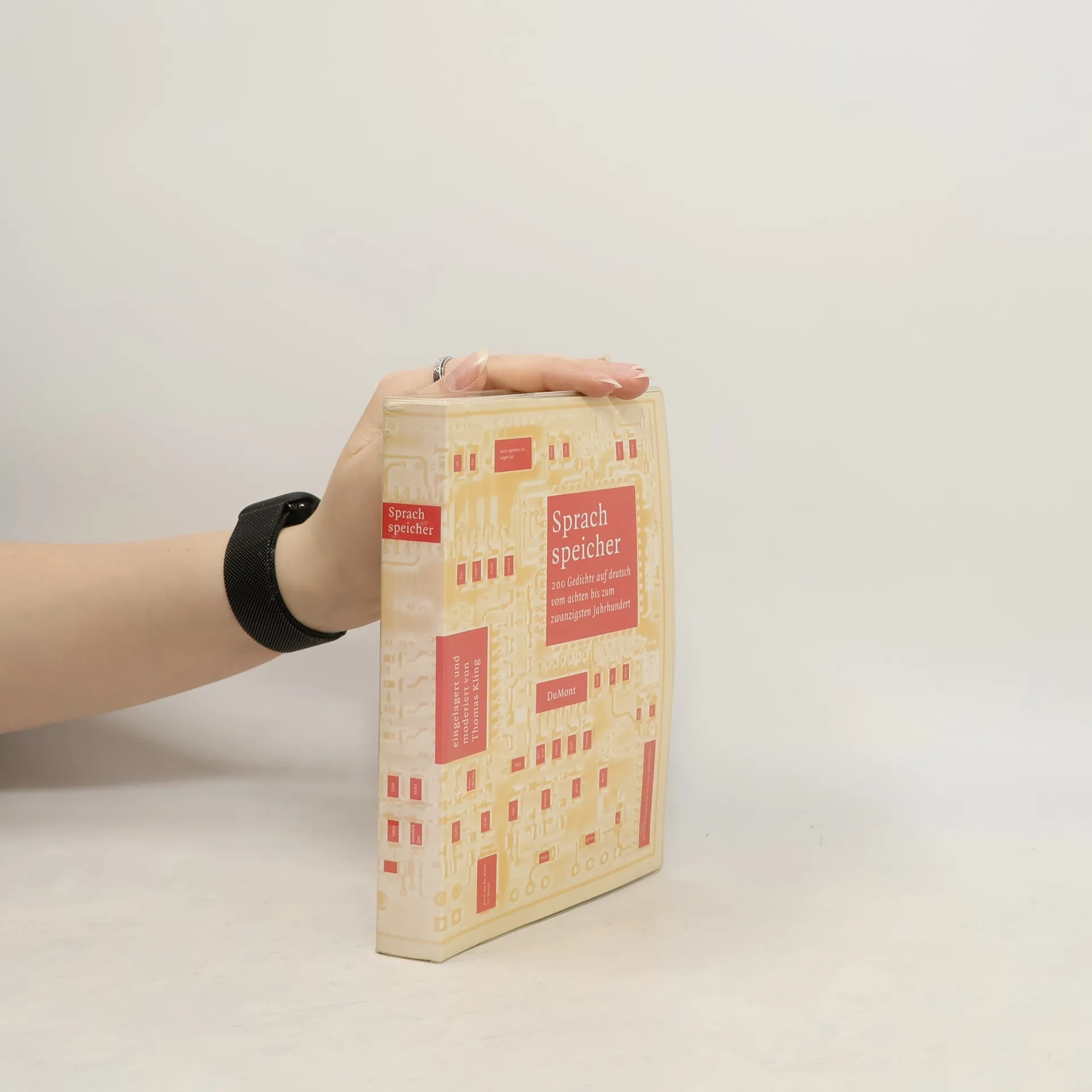\"Können Sie ein Gedicht auswendig vortragen?\" fragte das ZDF Passanten auf der Straße. \"Welche deutschsprachigen Gedichte brauchen wir für unser beginnendes Jahrhundert?\" fragte der DuMont Buchverlag Thomas Kling, laut Times Literary Supplement einer der \"herausforderndsten und komplexesten Dichter der deutschen Gegenwartsdichtung\". Klings Antwort enthält rund zweihundert Gedichte, die er in einem Sprachspeicher eingelagert und moderiert hat. \"Die uns beleben, die können wir brauchen, das sind Klassiker\", heißt es bei Martin Walser. Mit Sprachspeicher legt Thomas Kling eine außergewöhnliche Sammlung deutscher Gedichte vor, die mit den althochdeutschen Zaubersprüchen beginnt und bis zu Paul Celan und in die unmittelbare Gegenwart reicht: eine strenge Auswahl. Sprachspeicher lagert einen eigenwilligen Kanon ein, der zu überraschenden Bewertungen und Funden kommt. Sprachspeicher stellt die Frage nach der Haltbarkeit der Sprache. Sprachspeicher ermöglicht neue, unverstellt frische Blick e, auch auf verschüttete Traditionen.