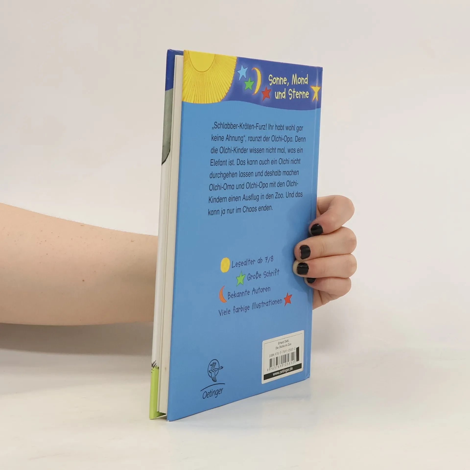 „Schlabber-Kröten-Furz! Ihr habt ja wohl gar keine Ahnung“, raunzt der Olchi-Opa. Denn die Olchi-Kinder wissen nicht einmal, was ein Elefant ist. Das kann auch ein Olchi nicht durchgehen lassen und deshalb machen Olchi-Oma und Olchi-Opa mit den Olchi-Kindern einen Ausflug in den Zoo. Und das kann ja nur im Chaos enden.