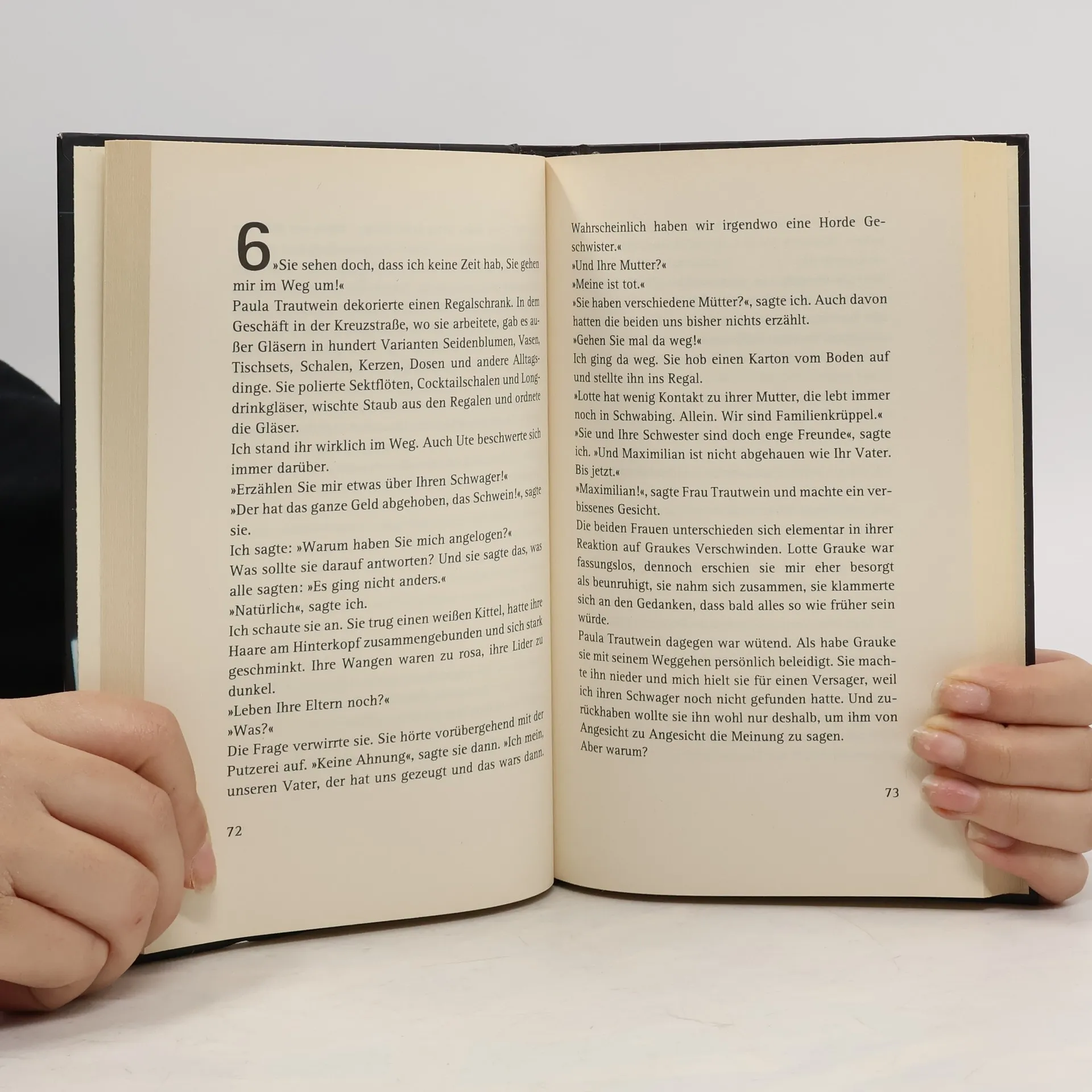 Zunächst sieht es so aus, als wäre es für Süden ein Fall wie viele: Ein Mann ist verschwunden, und nichts deutet darauf hin, dass man sich Sorgen machen muss. Der Schuster Maximilian Grauke hat nicht zum ersten Mal seine Frau ohne Erklärung verlassen. Diesmal jedoch ist alles anders. Und Süden braucht eine Weile, bis er das Schweigen von Graukes Ehefrau und deren Schwester zu deuten weiß. Und die Welt des Schusters erscheint plötzlich in einem völlig neuen Licht ... Tabor Süden Alter: 44 Größe: 1,78 m Gewicht: 88 kg Schulterlanges dunkelblondes Haar Augen: grün Beruf: Kriminalhauptkommissar auf der Vermisstenstelle Sein Spezialthema: Quemose Mutter: gestorben Vater: verschwunden Sein bekanntester Satz: »Ich arbeite auf der Vermisstenstelle der Kripo und kann meinen eigenen Vater nicht finden.«