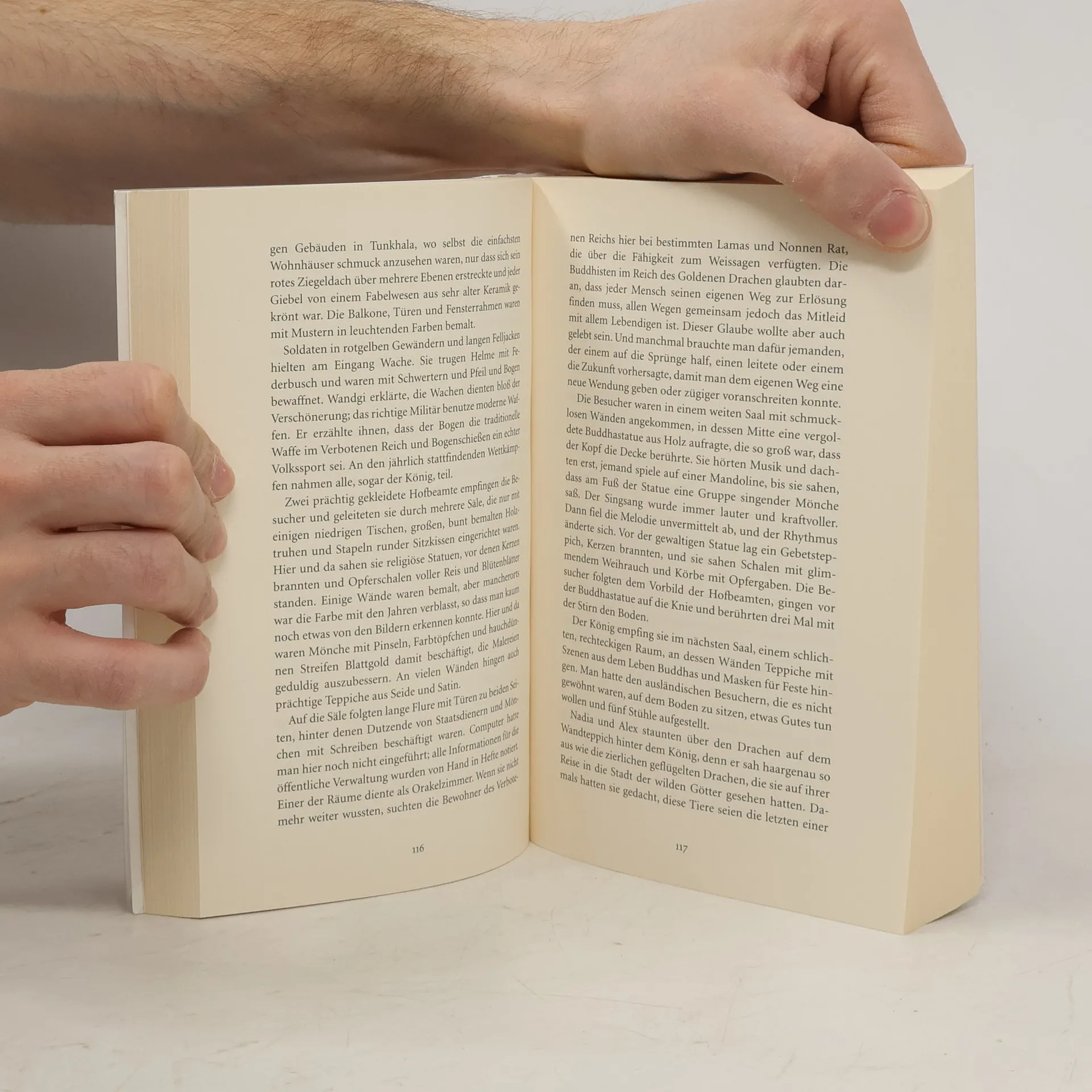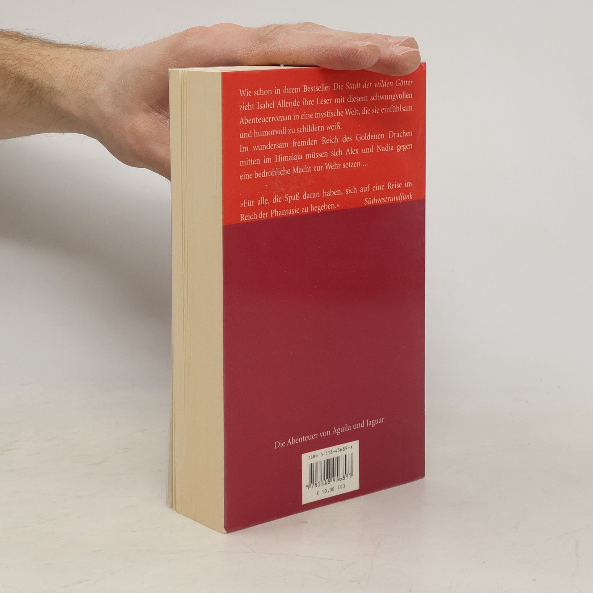Wer hätte schon erwartet, daß sich in dem friedlichen Reich des Goldenen Drachen, in das es die Reiseschriftstellerin Kate, ihren Enkel Alex und dessen Freundin Nadia diesmal zieht, die Ereignisse auf einmal zu überstürzen beginnen? Denn Alex und Nadia haben sich in den Kopf gesetzt, einer internationalen Verbrecherbande das Handwerk zu legen, die den Raub des Goldenen Drachen plant, der Statue, die durch ihre Weissagungen den Königen des Reiches jahrhundertelang geholfen hat, Unheil abzuwehren. Und dabei geraten sie in so manches Abenteuer …Wie schon in ihrem Bestseller Die Stadt der wilden Götter taucht man nur zu gerne ein in eine fremde, mystische Welt, die Isabel Allende in diesem schwungvollen Abenteuerroman einfühlsam und gleichzeitig humorvoll zu schildern weiß.