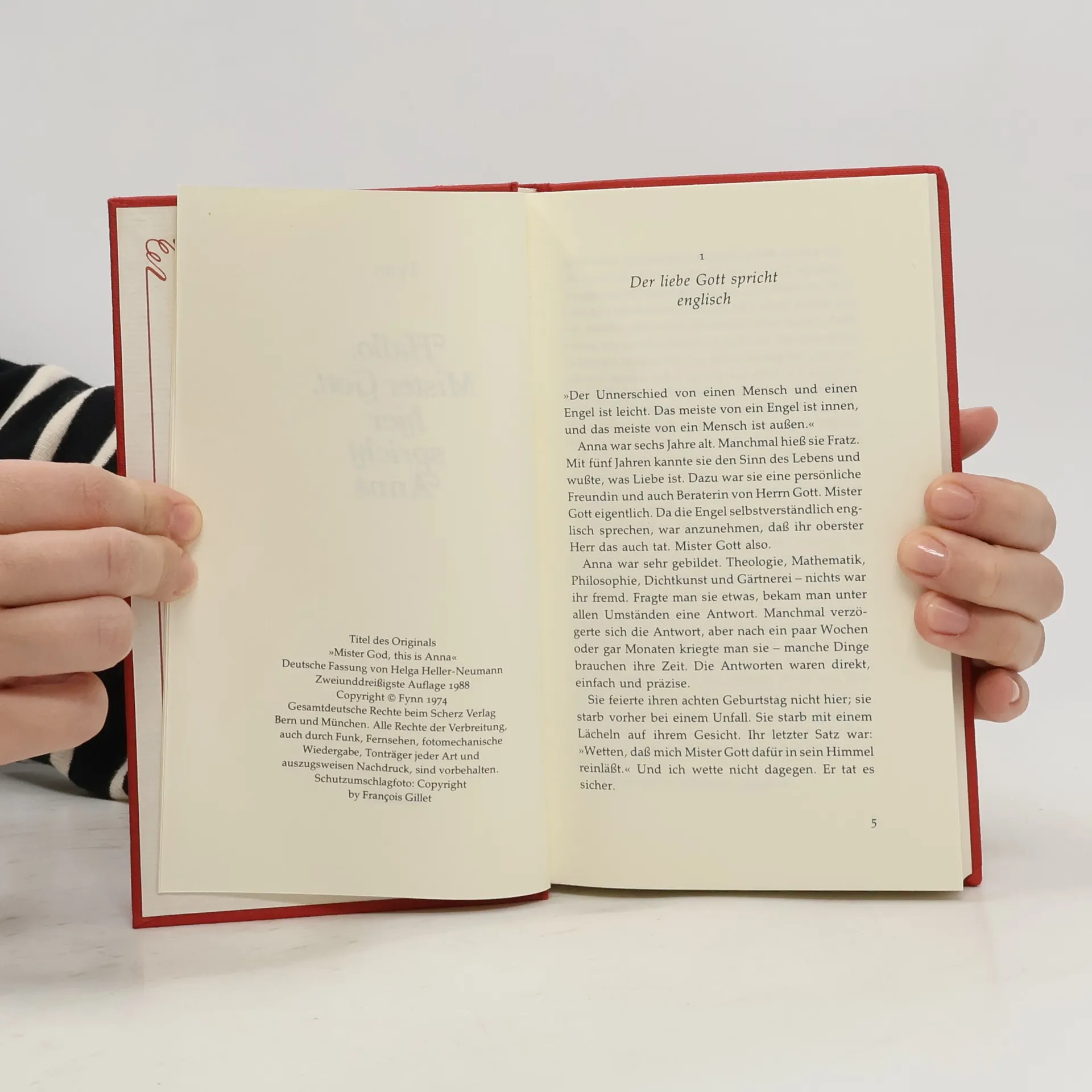 "Mister Gott muss sich manchmal ganz klein machen, sonst weiss er doch überhaupt nicht, wie ein Marienkäfer lebt – oder?" Diese Frage stellt Anna, als sie fünf Jahre alt ist, ein Jahr nach ihrer Begegnung mit Fynn, der sie als Strandgut in den Londoner Docks aufgelesen hat. Drei Jahre lang sind die beiden unzertrennlich, und Anna erklärt Fynn die Welt, die Menschen und die Facetten von Liebe, Freude, Angst und Trauer. In dieser Zeit entdecken sie gemeinsam mehr als viele Menschen in ihrem ganzen Leben. Anna, das 'Geschenk auf zwei Beinen', hinterfragt alles und deckt die Heuchelei der Erwachsenen auf. Mit ihrem Röntgenblick für falsche Gefühle und ihrem unermüdlichen Drang, die Wahrheit zu ergründen, bringt sie Licht in Fynns Leben. Ihre bedingungslose Liebe und die Zuneigung, die sie von anderen erhält, machen sie zu einer einzigartigen Figur. Die Geschichte von Anna ist eine ergreifende Erzählung, die Menschen, die den Kontakt zur Liebe verloren haben, aufrüttelt. Als Anna eines Tages von einem Baum stürzt, sagt sie zu Fynn: "Wetten, dass mich Mister Gott dafür in sein Himmel reinlässt?" Fynn weiß, dass Anna immer recht hat. Eine Anna gibt es nur selten, und ihre Präsenz würde die Welt zweifellos verbessern. "Anna kann man nur mit Saint-Exupérys ›Der kleine Prinz‹ vergleichen."
