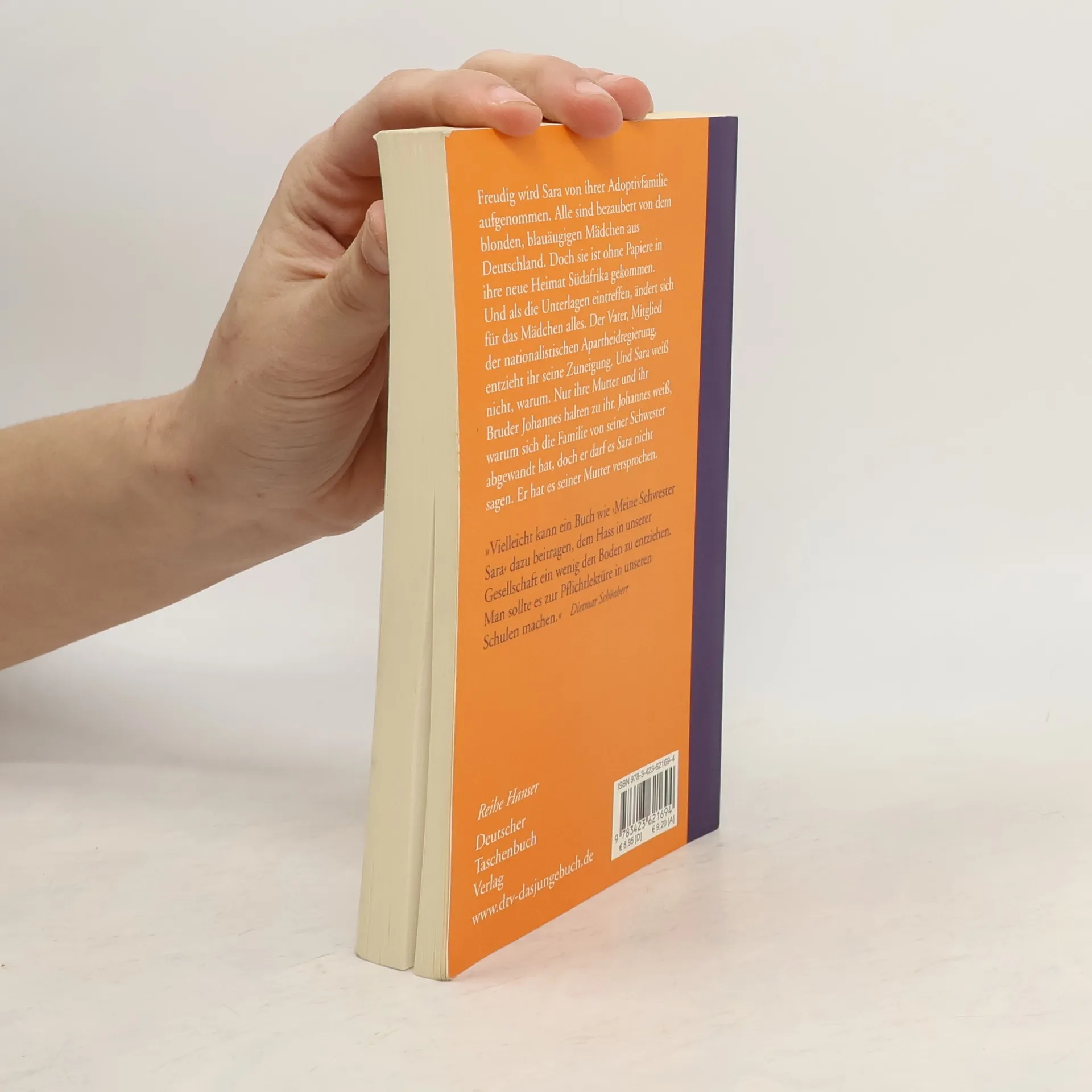 »Vielleicht kann ein Buch wie ›Meine Schwester Sara‹ dazu beitragen, dem Hass in unserer Gesellschaft ein wenig den Boden zu entziehen. Man sollte es zur Pflichtlektüre an unseren Schulen machen.« Dietmar Schönherr Südafrika am Ende der vierziger Jahre des 20. Jahrhunderts: Eine Burenfamilie entschließt sich, eine deutsche Kriegswaise zu adoptieren. Freudig wird das blonde, blauäugige kleine Mädchen in die Familie aufgenommen. Doch als Saras Papiere ein halbes Jahr später eintreffen, stellt sich heraus, dass sie Jüdin ist. Insbesondere der Familienvater, ganz Patriarch und Mitglied der nationalistischen Apartheidregierung, entzieht Sara daraufhin seine Liebe. Als Studentin schließt sich Sara, durch den am eigenen Leib erlebten Rassismus motiviert, dem Widerstand gegen das Apartheidregime an. Sie führt damit auch ihre in der Tradition verhaftete Familie zu einer zaghaften Auseinandersetzung mit dem politischen System. Feinfühlig werden die Familienstrukturen dargestellt und die Familienmitglieder vor dem Hintergrund von Tradition, Erziehung und menschlicher Unzulänglichkeit gezeigt.