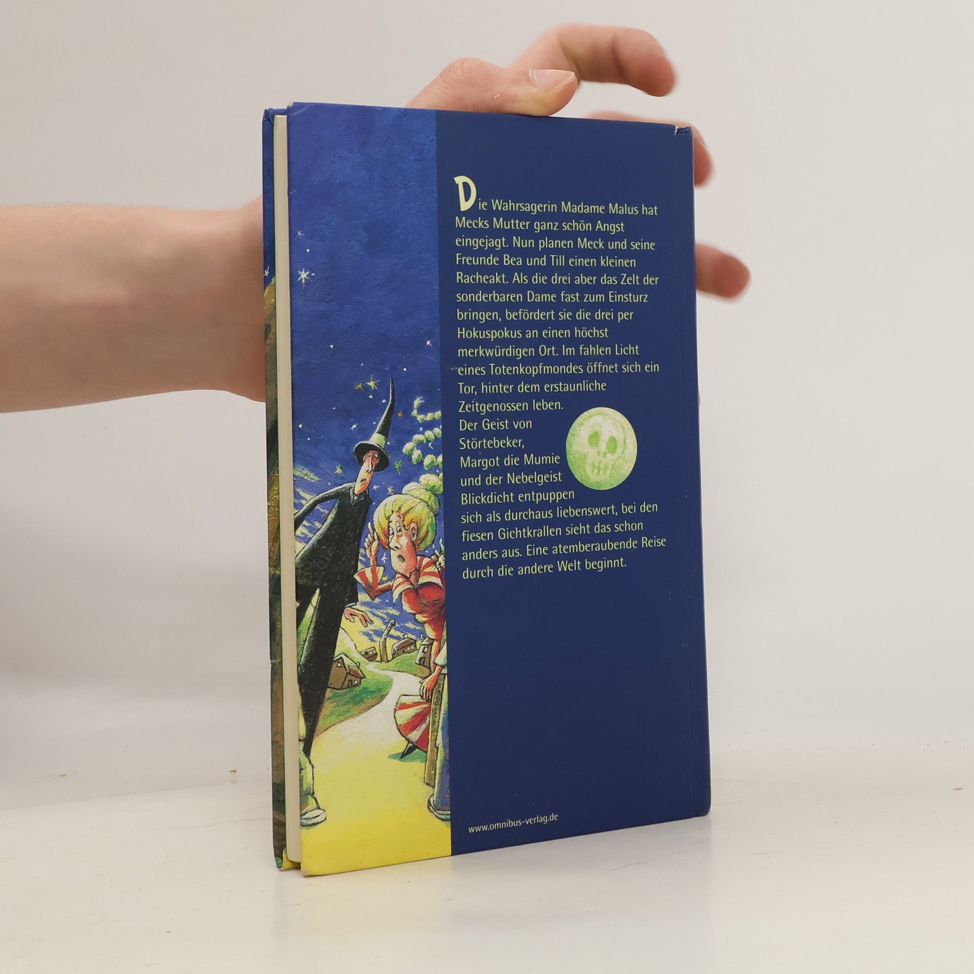 Wabernde Gespenster, maulende Monster, in Haselnüsse verliebte Vampire? Es gibt sie! Till, Meck und Bea wissen das genau – die drei verschlägt es mitten unter diese merkwürdigen Gesellen! Zufrieden blickt die jähzornige Madame Malus in ihre Kristallkugel. Den drei frechen Gören hat sie eine ordentliche Abreibung verpasst. Den Weg aus der anderen Welt finden sie nie! Nie? Da irrt Madame. Von geschwätzigen Red-Dächern und fahlen Totenkopfmonden lassen sich die drei nicht in die Irre führen. Und mit dem schießwütigen Geist Störtebekers, dem weinseligen Weingeist Bacchus und der nicht mehr ganz so knackigen Mumie Hatschepsut haben die Freunde Gefährten an ihrer Seite, die mit allen Gefahren der anderen Welt allerbestens vertraut sind – theoretisch zumindest.