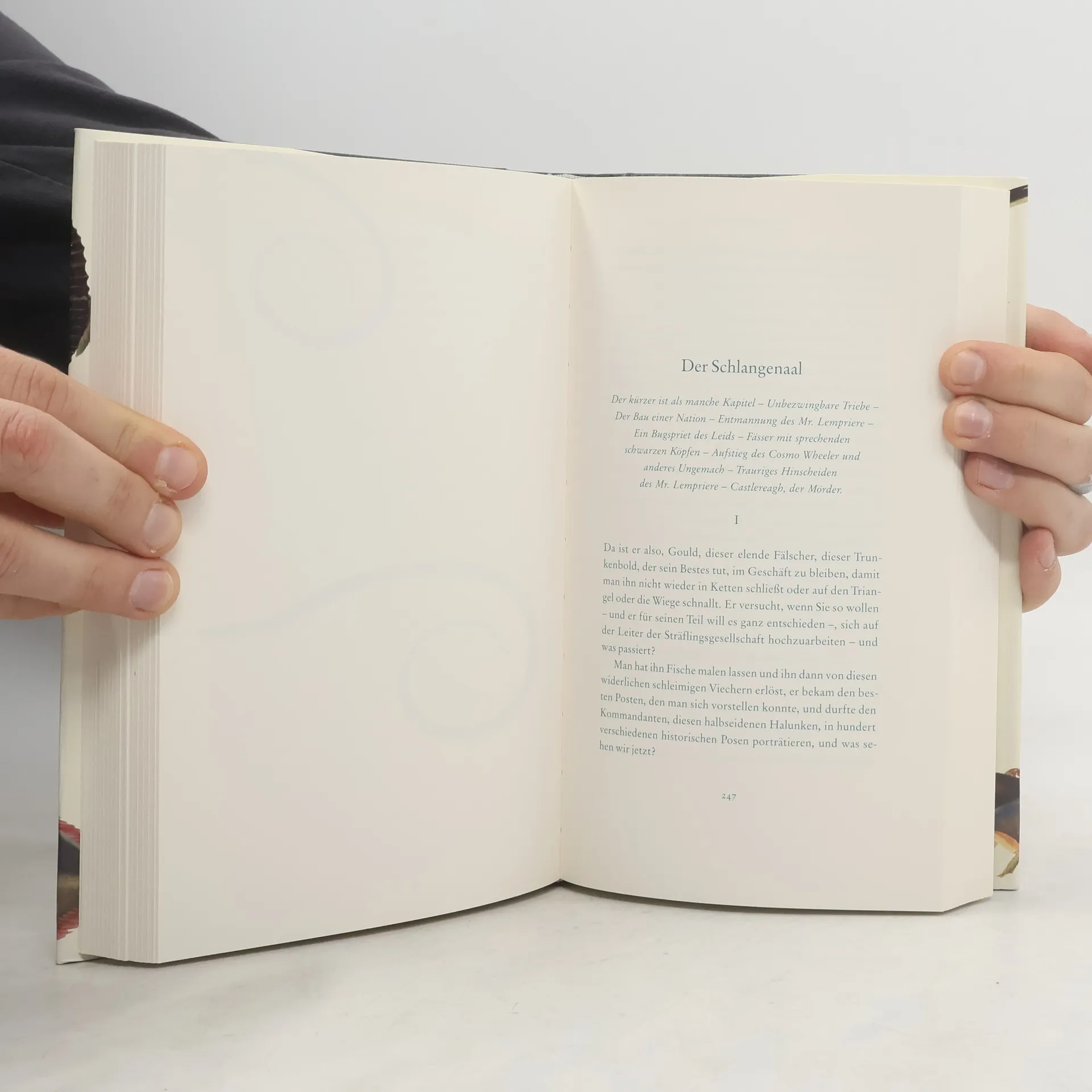 Im Tasmanien unserer Tage stößt Sid Hammett, ein kleiner Antiquitätenfälscher, auf einem seiner Streifzüge auf die merkwürdige Hinterlassenschaft eines anderen Kunstfälschers. Das »Buch der Fische« eines gewissen William Buelow Gould birgt nicht nur wundervolle, akribisch hingetupfte Aquarelle der tasmanischen Fischwelt - es stellt auch ein Erinnerungswerk aus unheilvollen Tagen dar. Tiefer und tiefer zieht es Hammett hinein in die dunkelsten Kapitel britischer Kolonialzeit. Bald dämmert ihm, dass ihm der Aufstieg aus den ozeanischen Seelentiefen Goulds niemals mehr gelingen wird.