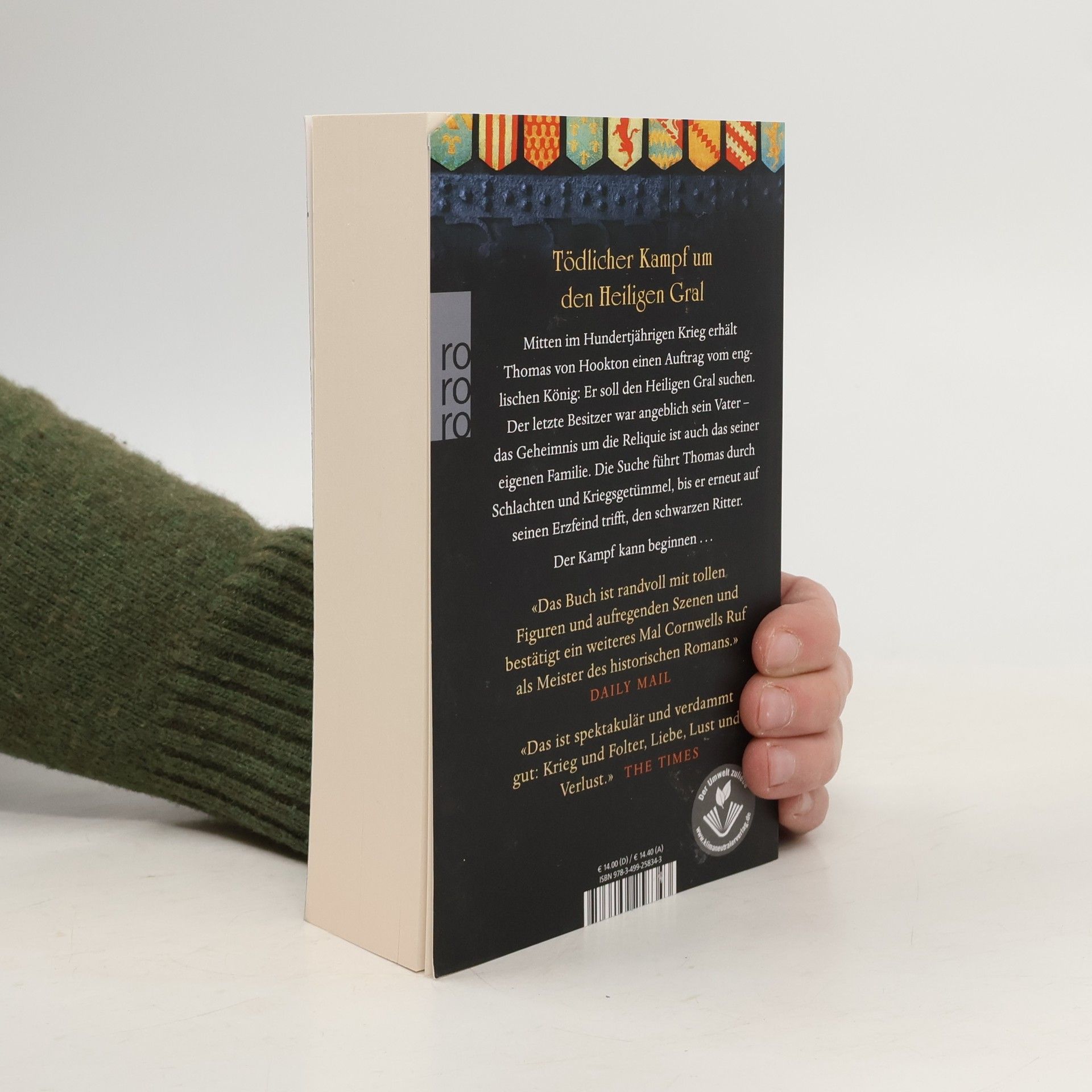 Tödlicher Kampf um den Heiligen Gral Mitten im Hundertjährigen Krieg erhält Thomas von Hookton einen Auftrag vom englischen König: Er soll den Heiligen Gral suchen. Der letzte Besitzer war angeblich sein Vater – das Geheimnis um die Reliquie ist auch das seiner eigenen Familie. Die Suche führt Thomas durch Schlachten und Kriegsgetümmel, bis er erneut auf seinen Erzfeind trifft, den schwarzen Ritter. Der Kampf kann beginnen. Die Bücher vom Heiligen Gral, Band 2