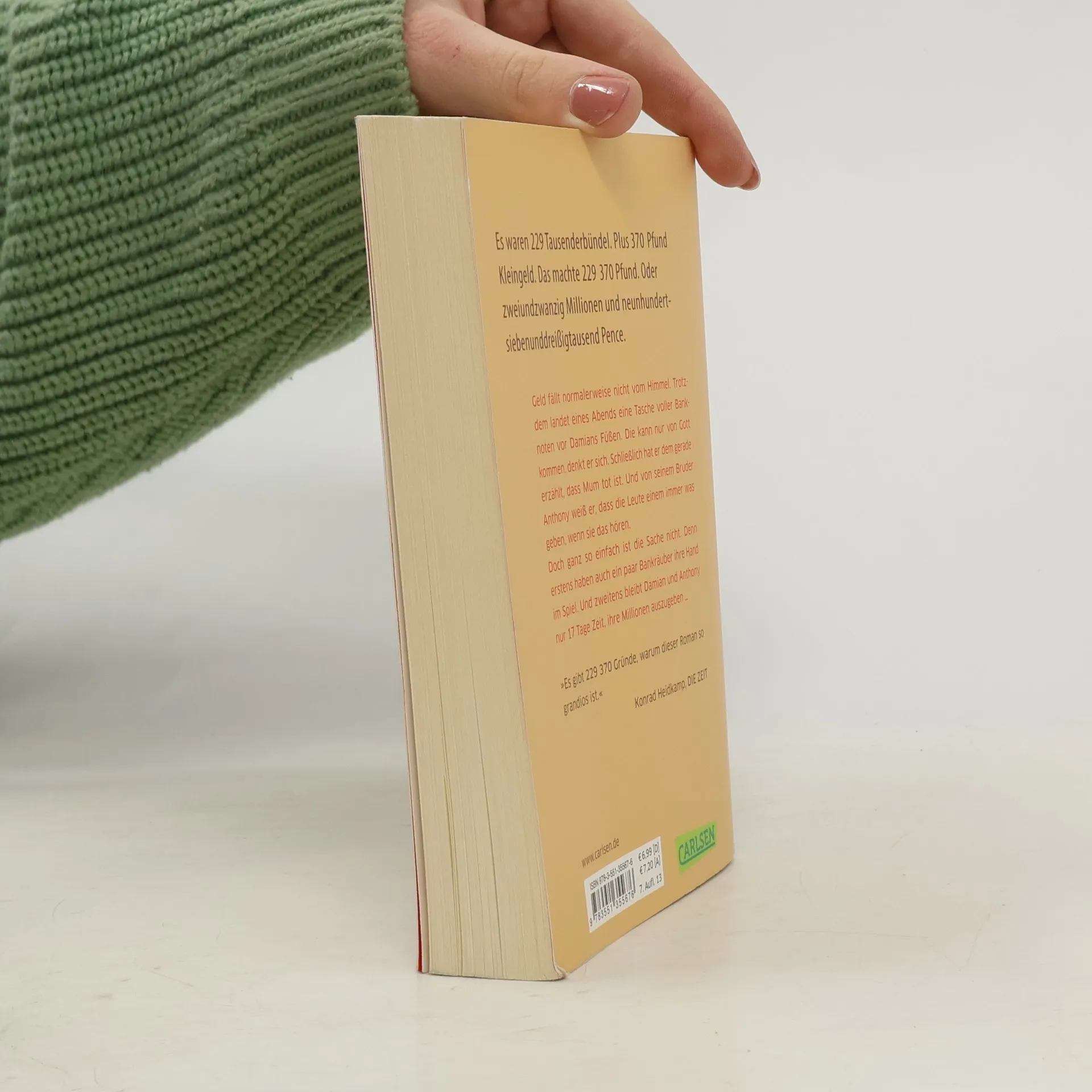 Zugegebenermaßen passiert es eher selten, dass Geld vom Himmel fällt. Doch eines Abends landen Millionen von Pfund vor Damians Füßen. Um genau zu sein: zweiundzwanzig Millionen und neunhundertsiebenunddreißigtausend Pence. Damian glaubt, dass das Geld nur von Gott sein kann. Schließlich hat er dem gerade erzählt, dass Mum tot ist. Und von seinem großen Bruder Anthony weiß er, dass die Leute dir immer was geben, wenn du ihnen das erzählst. Außerdem, wer sonst hätte so einen Haufen Geld? Aber es ist nicht nur erquicklich, so reich zu sein, denn die beiden Brüder haben nur 17 Tage Zeit, um das Geld auszugeben. Und damit fangen die Schwierigkeiten erst an ...
