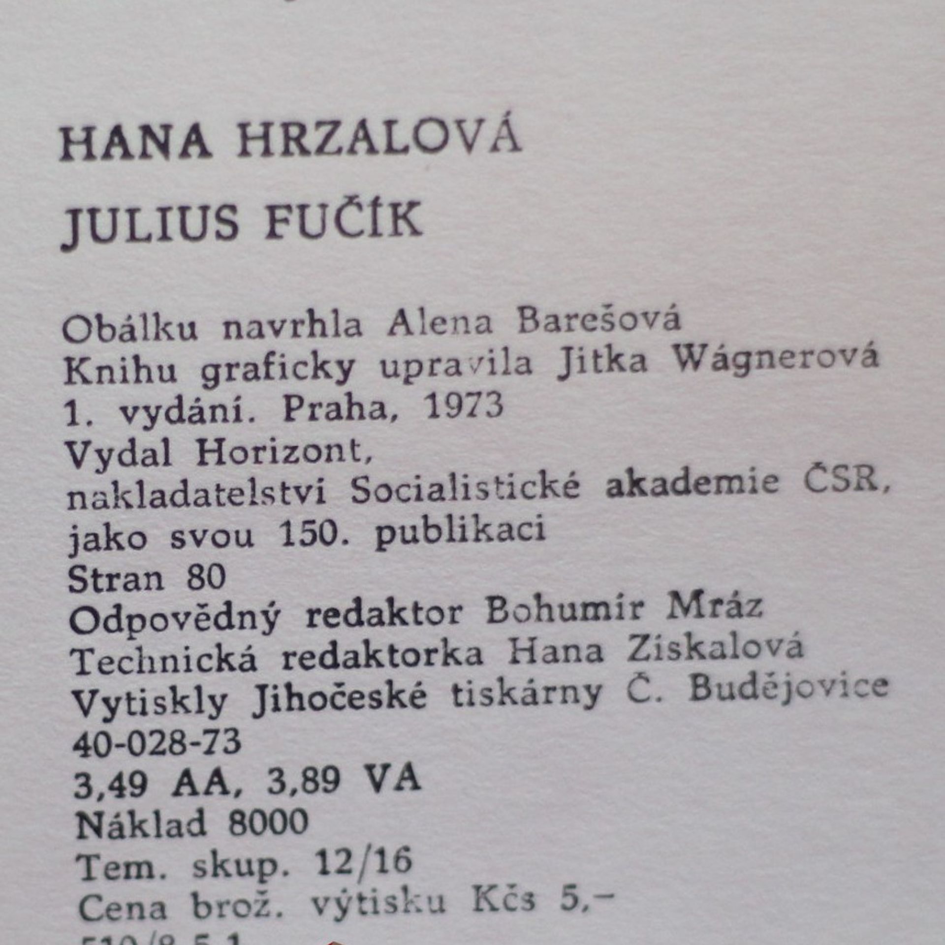 Julius Fučík, Hana Hrzalová