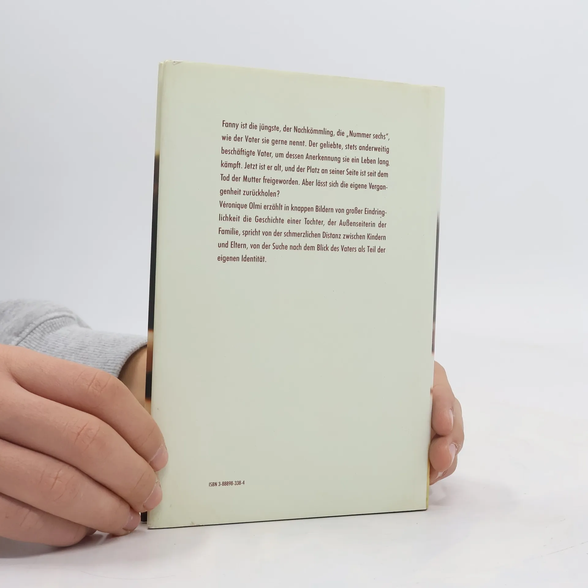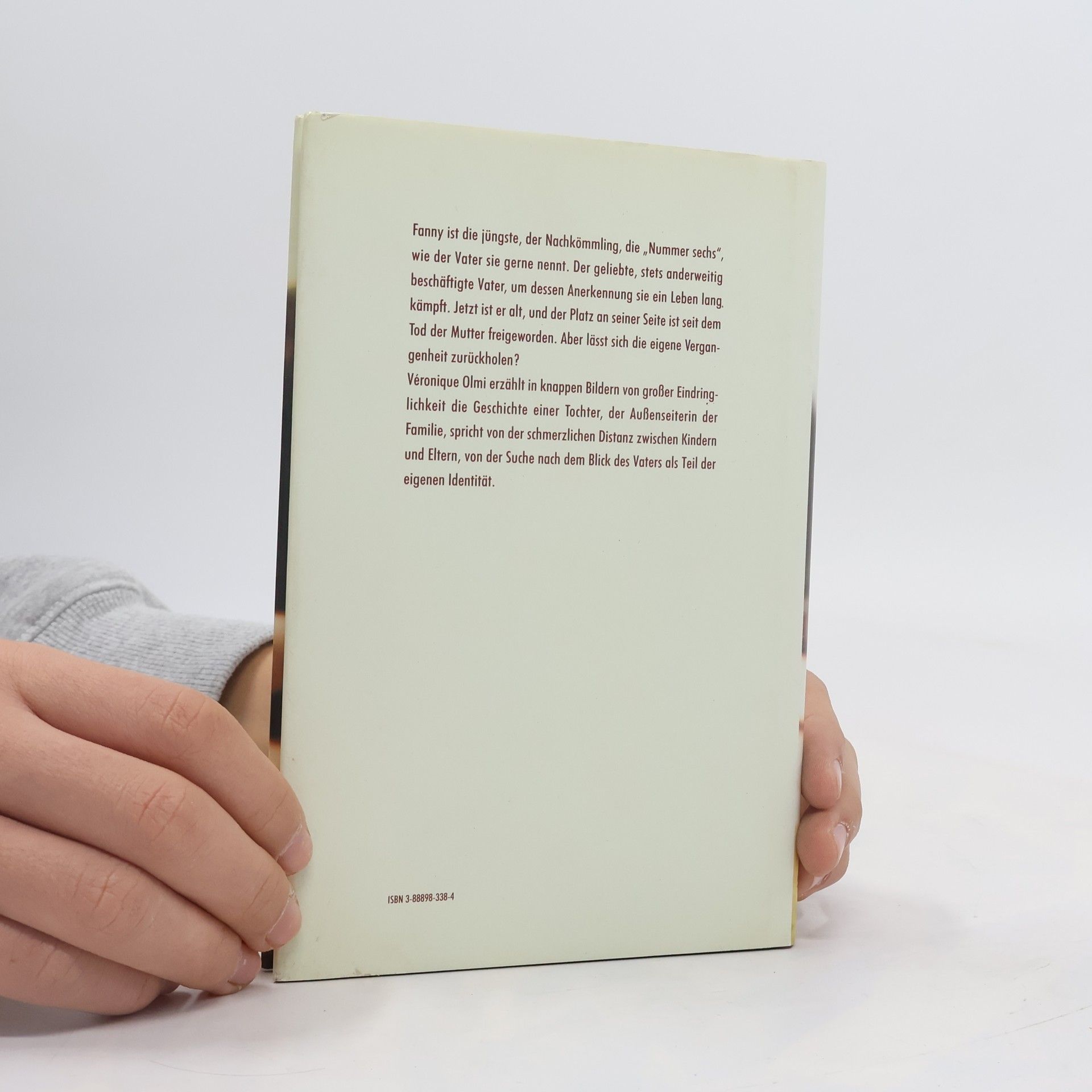 Fanny ist die Jüngste, der Nachkömmling, die „Nummer Sechs“, wie sie der Vater gerne nennt. Der geliebte, stets anderweitig beschäftigte Vater, um dessen Anerkennung sie ein Leben lang kämpft. Jetzt ist er alt, und der Platz an seiner Seite ist seit dem Tod der Mutter frei geworden. Aber lässt sich die eigene Vergangenheit zurückholen? Véronique Olmi erzählt in knappen Bildern von großer Eindringlichkeit die Geschichte einer Tochter, der Außenseiterin der Familie, spricht von der schmerzlichen Distanz zwischen Kindern und Eltern, von der Suche nach dem Blick des Vaters als Teil der eigenen Identität.