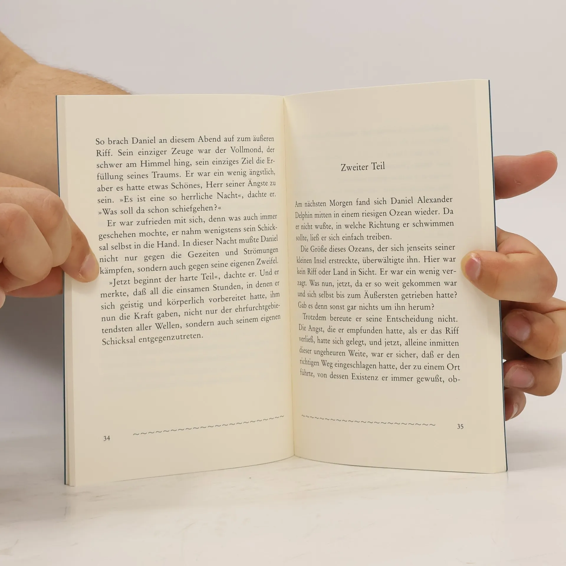 Hör nie auf, an deinen Traum zu glauben – auch wenn das Leben manchmal hart mit dir umspringt. Wie Daniel Alexander, der junge Delphin, der das sichere Riff verläßt und davonschwimmt, seiner Bestimmung entgegen … 'Eine wunderbare Geschichte über unseren Mut, unsere Ängste und unsere persönlichen Grenzen.' Handelsblatt