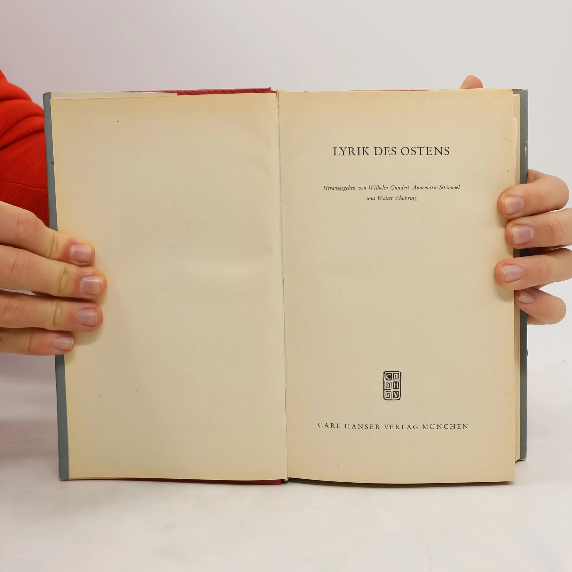 Umfangreiche Anthologie mit Texten aus dem vorderen Orien, Indien, China und Japan. Im Anhang mit einem Verzeichnis der Dichter und Dichtungen, dem Quellennachweis, einem Verzeichnis der Übersetzer und einem Schlußwort des Verlags. Lyrik des Ostens. Gedichte der Völker Asiens vom Nahen bis zum Fernen Osten. Die Redaktion des Buches besorgte Herbert G. Göpfert. Dozentin Dr. Dr. Annemarie Schimmel übernahm die Herausgabe der Lyrik der Völker des Vorderen Orients, Professor Dr. Walther Schubring bearbeitete den indischen Teil, Prof. Dr. Wilhelm Gundert betreute die Lyrik Chinas und Japans.