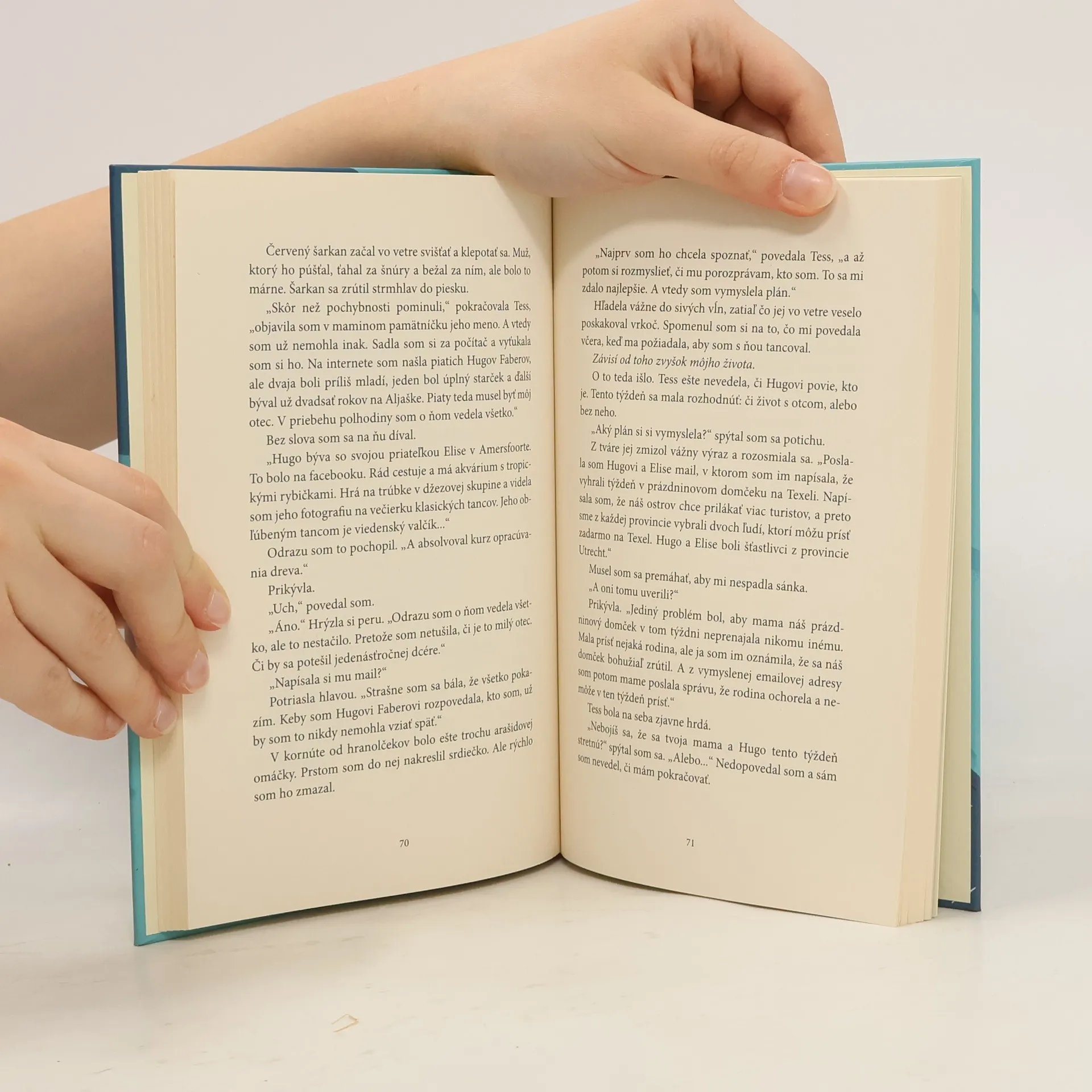 Desaťročný Samuel prichádza na ostrov, aby tam so svojou rodinou strávil prázdninový týždeň. Ich pobyt sa však nezačína práve idylicky. Jeho brat si zlomí členok a on sa po príchode do ošetrovne zoznámi s jedenásťročným, výnimočne odvážnym dievčaťom. Jeho mama tu pracuje ako zdravotná sestra a dcéru od narodenia vychováva sama. Tess však túži spoznať vlastného otca a bez vedomia mamy vyhúta plán,ako ho dostať do ich prázdninovej chatky na ostrove. Samuel jej v tom pomáha,i keď má opačný problém: kým Tess túži po zblížení s otcom,on sa každý deň trénuje v tom, aby sa pripravil na stratu svojich blízkych, keď to raz príde. Vtipne vyrozprávaný príbeh o vynikajúcom preklade Adama Bžocha, plný nákazlivej radosti o stratách a nálezoch a snahe nájsť si svoje miesto vo svete, zdôrazňuje dôležitosť rodinnej súdržnosti a priateľstva. Kniha dostala viacero významných knižných cien, ako Vlag en Wimpel,Flámska cena detskej poroty 2014, či LUCHS-Preis 2014 a jej filmová adaptácia zas získala prestížne ocenenia: špeciálnu cenu mládežníckej poroty Berlinale 2019,cenu diváka NYICFF (najväčší filmový festival pre deti a mládež v Severnej Amerike) a chorvátsku divácku cenu na festivale Kinokino 2019.