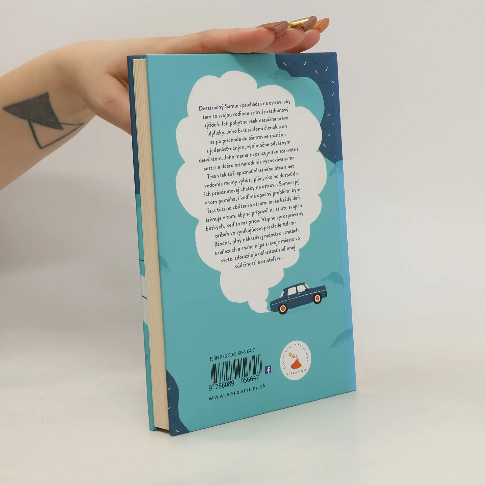 Desaťročný Samuel prichádza na ostrov, aby tam so svojou rodinou strávil prázdninový týždeň. Ich pobyt sa však nezačína práve idylicky. Jeho brat si zlomí členok a on sa po príchode do ošetrovne zoznámi s jedenásťročným, výnimočne odvážnym dievčaťom. Jeho mama tu pracuje ako zdravotná sestra a dcéru od narodenia vychováva sama. Tess však túži spoznať vlastného otca a bez vedomia mamy vyhúta plán,ako ho dostať do ich prázdninovej chatky na ostrove. Samuel jej v tom pomáha,i keď má opačný problém: kým Tess túži po zblížení s otcom,on sa každý deň trénuje v tom, aby sa pripravil na stratu svojich blízkych, keď to raz príde. Vtipne vyrozprávaný príbeh o vynikajúcom preklade Adama Bžocha, plný nákazlivej radosti o stratách a nálezoch a snahe nájsť si svoje miesto vo svete, zdôrazňuje dôležitosť rodinnej súdržnosti a priateľstva. Kniha dostala viacero významných knižných cien, ako Vlag en Wimpel,Flámska cena detskej poroty 2014, či LUCHS-Preis 2014 a jej filmová adaptácia zas získala prestížne ocenenia: špeciálnu cenu mládežníckej poroty Berlinale 2019,cenu diváka NYICFF (najväčší filmový festival pre deti a mládež v Severnej Amerike) a chorvátsku divácku cenu na festivale Kinokino 2019.