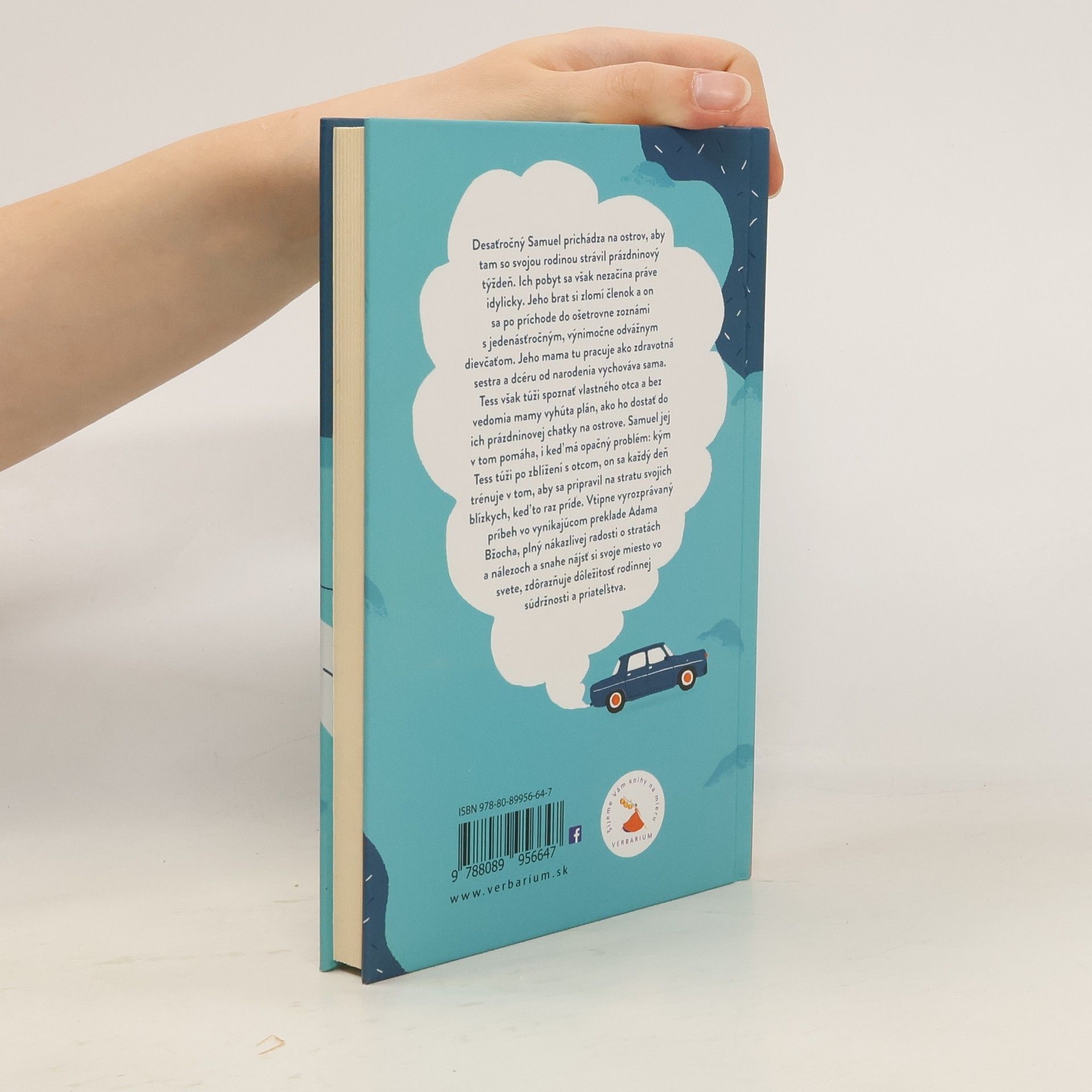 Desaťročný Samuel prichádza na ostrov, aby tam so svojou rodinou strávil prázdninový týždeň. Ich pobyt sa však nezačína práve idylicky. Jeho brat si zlomí členok a on sa po príchode do ošetrovne zoznámi s jedenásťročným, výnimočne odvážnym dievčaťom. Jeho mama tu pracuje ako zdravotná sestra a dcéru od narodenia vychováva sama. Tess však túži spoznať vlastného otca a bez vedomia mamy vyhúta plán,ako ho dostať do ich prázdninovej chatky na ostrove. Samuel jej v tom pomáha,i keď má opačný problém: kým Tess túži po zblížení s otcom,on sa každý deň trénuje v tom, aby sa pripravil na stratu svojich blízkych, keď to raz príde. Vtipne vyrozprávaný príbeh o vynikajúcom preklade Adama Bžocha, plný nákazlivej radosti o stratách a nálezoch a snahe nájsť si svoje miesto vo svete, zdôrazňuje dôležitosť rodinnej súdržnosti a priateľstva. Kniha dostala viacero významných knižných cien, ako Vlag en Wimpel,Flámska cena detskej poroty 2014, či LUCHS-Preis 2014 a jej filmová adaptácia zas získala prestížne ocenenia: špeciálnu cenu mládežníckej poroty Berlinale 2019,cenu diváka NYICFF (najväčší filmový festival pre deti a mládež v Severnej Amerike) a chorvátsku divácku cenu na festivale Kinokino 2019.