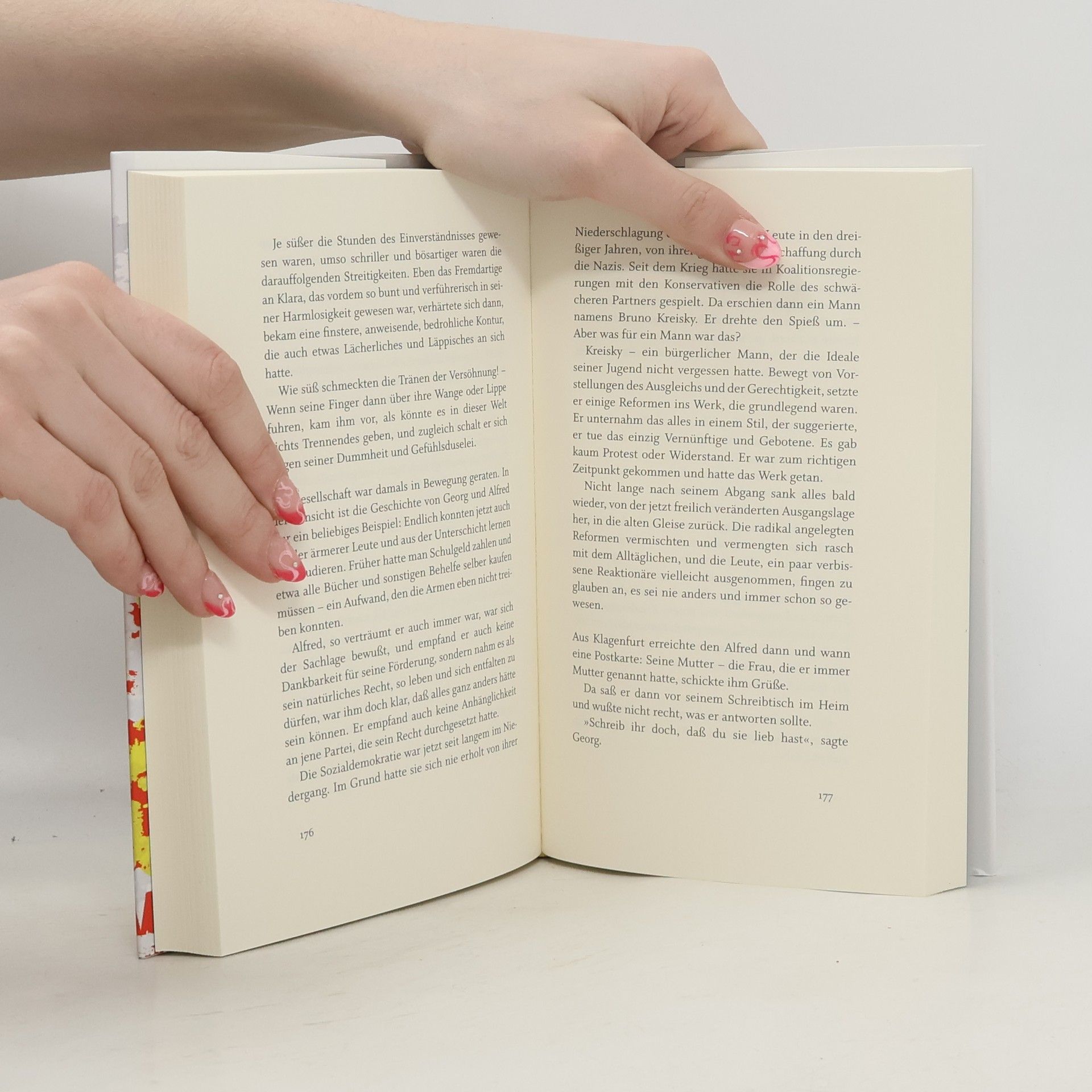 Das Buch beginnt mit den ersten Kriegsheimkehrern und dem Schwarzmarkt, während wir das Leben der Freunde Alfred und Georg von ihrer Kindheit in einer ärmlichen Klagenfurter Mietskaserne bis zum Studienbeginn in Wien verfolgen. Leitomeritzky, ein Jude, der im Konzentrationslager war, arbeitet sich zäh zum König des Gebrauchtwagenhandels empor. Die Lebensbahnen der Figuren kreuzen sich in den Häuserlandschaften des Romans, in dem Politik, Wirtschaft und Kunst durch einprägsame Charaktere vertreten sind. Diese Figuren bilden ein Patchwork, das Geschichte und Geschichten lebendig werden lässt. Mit sinnlichen und historischen Details aufgeladen, reicht die Erzählung bis in die Ära Kreisky und darüber hinaus. Am Ende ist Georg ein reicher, unzufriedener Geschäftsmann, während Alfreds Spuren im revolutionären Berlin verloren sind. Der Roman zeigt den Weg der Europäer in eine saturierte, unentschlossene Postmoderne und versucht, die Epoche prägnant zu erfassen. Er verbindet einen Reichtum an Figuren und Lebensentwürfen mit einem konzentrierten, zugleich leichten Erzählstil. Peter Rosei hat mit dieser bedeutenden Geschichte sein zentrales Werk geschaffen, das an die Werke von Adalbert Stifter und Thomas Bernhard erinnert.